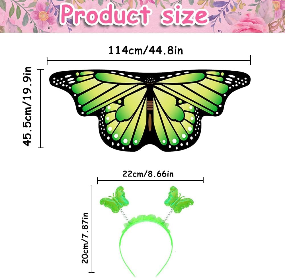 🧚 Elegante mantello da farfalla per bambini: mantello con ali di farfalla disegnato a forma di farfalla, carino e bello. Con questo bellissimo costume per bambini con ali di farfalla, le tue bambine voleranno come farfalle per la casa o il giardino, come una fata felice e carina. Adatto a bambini dai 3 ai 6 anni. 🧚 Morbide Ali di Farfalla per Bambini: realizzate in chiffon, leggere e comode da indossare. Inoltre, le nostre ali da farfalla per bambini sono dotate di cinghie elastiche e maniche facili da indossare e da togliere. A braccia aperte, la tua principessa è come una vera farfalla. 🧚 Regalo per bambina con ali di farfalla: l'elegante costume da farfalla per bambini attirerà l'attenzione dei bambini e permetterà loro di distinguersi. Lo straordinario costume con ali di farfalla è un regalo perfetto per la festa dei bambini, un regalo di Natale, un regalo di compleanno per ragazze. 🧚 Mantello di Halloween per bambini alla festa: il bellissimo costume con ali di fata farfalla farà risaltare tua figlia a carnevale, costumi di danza, Halloween e giornate in maschera. Inoltre, le ali di farfalla in costume sono il regalo perfetto per un compleanno. 🧚 Cosa ottieni: 1 mantello da farfalla per bambini, dimensioni: 44,9 * 17,9 pollici, 1 fascia per capelli da farfalla per bambini, dimensioni: 8,7 pollici, le ali da farfalla per bambini porteranno più tempo divertente alle tue ragazze. Soddisfazione garantita al 100% e servizio clienti 24 ore su 24.