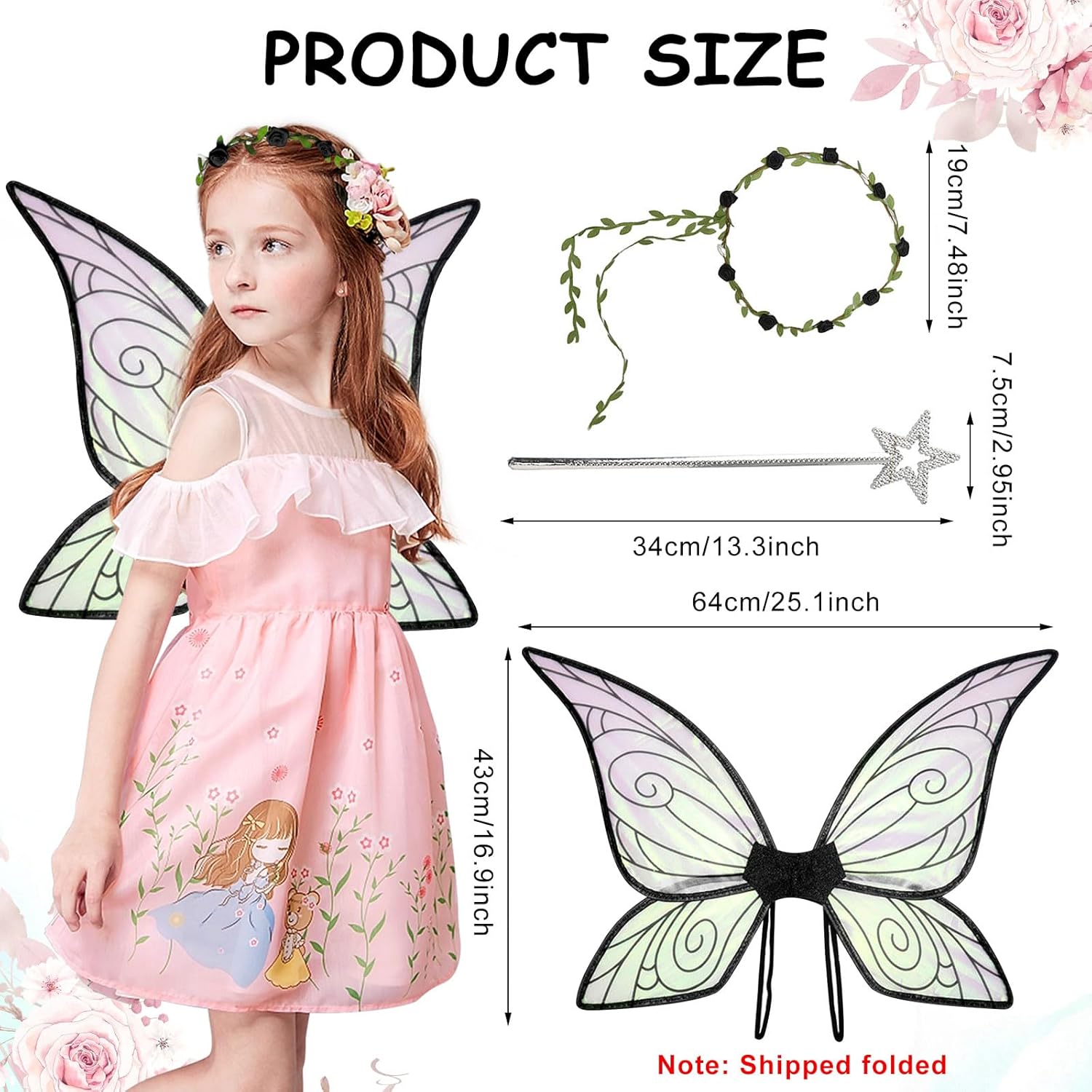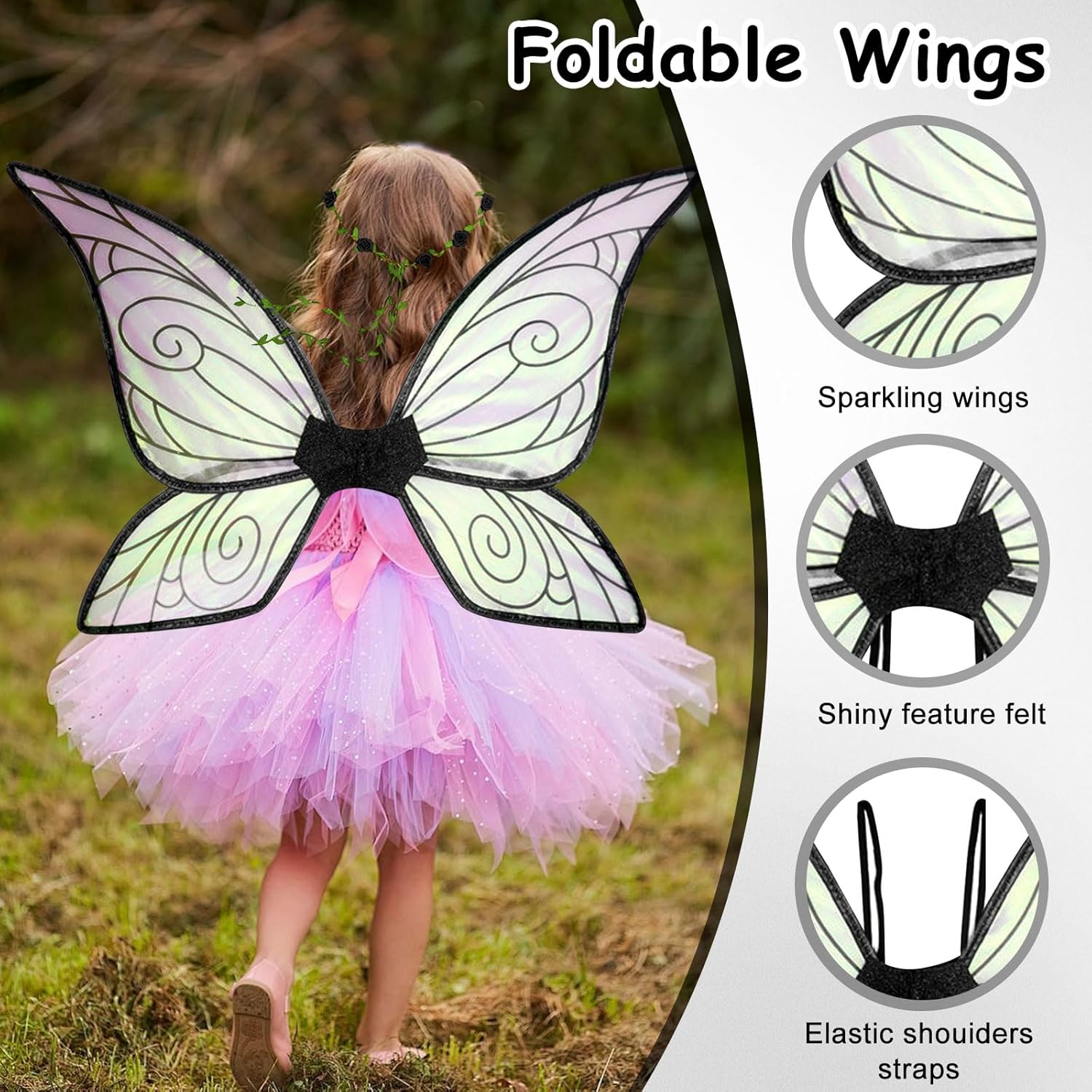 【Costume da 3 fatine da donna】Il nostro set di 3 ali di ali da fata è composto da 1 ali di fata scintillanti, 1 corona di fata e 1 bastone da fata. La ghirlanda di fiori fata regolabile è adatta per diverse acconciature. Il set di ali di fate è perfetto per ogni bambino che ama la magia delle fate. Indossa le nostre ali di farfalla puoi trasformarti in una simpatica fata con ali e ballare in un fantastico mondo da favola. Alta qualità e riutilizzabile: le nostre ali da fata sono realizzate in organza, il magico effetto gradiente sul costume da donna con ali di fata riflette colori incantevoli alla luce del sole, con luce diversa che riflette diversi effetti. Il filo interno è abbastanza robusto da mantenere la sua forma, ma anche abbastanza flessibile da poter regolare l'angolo. Le fasce elastiche sono utilizzate per indossare le ali, che hanno una buona fissazione e non scivolano facilmente quando corrono e saltano. Puoi usarli ripetutamente. 【Leggero e stabile】Le ali delle fate per bambini sono lunghe 43 cm, larghezza dell'ala 64 cm, leggere e facili da spostare. Lo scheletro centrale è collegato da feltro e due elastici fissati con feltro a farfalla. Non si sente nemmeno la presenza di ali di fata, l'elastico fornisce una fissazione affidabile, e le ali fata possono rimanere stabili sulla schiena e godere della gioia di trasformarsi in una fata! Ali da fata lucide: riceverete un set completo di costume da fata da donna, il design scintillante è pieno di fantasia, le donne o le ragazze indossano le ali d'angelo sembreranno una fata. Ogni ragazza ha un sogno di indossarla e diventare una bella fata che balla con i fiori. Può anche essere un regalo per i vostri amici o familiari. Il focus della festa: questo set con ali è perfetto per bambini e adulti, ispira immaginazione e divertimento senza fine. Fairy Wings è un grande costume per feste o per giocare a dress-up, è molto adatto per Halloween, feste di compleanno, feste in maschera, carnevale, servizi fotografici, feste, feste a tema, feste in costume, ecc. Con le nostre ali di farfalla sarete al centro della festa e brilleranno tra la folla.