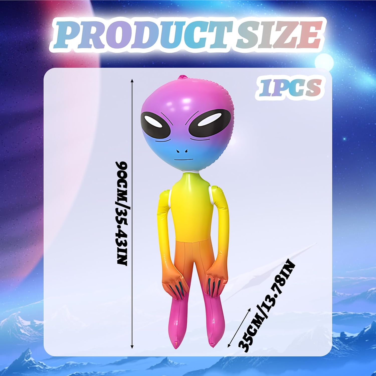 Decorazioni vivaci per feste: l'alieno gonfiabile da 90 cm presenta colori vivaci e un design unico, perfetto per feste di Halloween, feste di compleanno ed eventi a tema spaziale; il suo aspetto accattivante migliora qualsiasi atmosfera di festa e crea opportunità fotografiche memorabili Materiale durevole: realizzato con materiali di alta qualità, questo alieno esplosivo è robusto e resistente allo sbiadimento; la superficie liscia e le cuciture rinforzate garantiscono un uso duraturo senza perdite d'aria, fornendo un divertimento affidabile per più eventi Facile da gonfiare e riporre: questo gonfiabile alieno può essere rapidamente gonfiato e sgonfiato per comodità; dopo l'uso, basta sgonfiare e piegare per riporlo in modo compatto, rendendolo facile da trasportare e riutilizzare per feste future Accessorio versatile per feste: ideale come decorazione, accessorio fotografico o bomboniera, questo gonfiabile da uomo aggiunge un tocco divertente a qualsiasi evento; il suo design leggero consente un facile posizionamento e disposizione, rendendolo adatto a varie configurazioni per feste Ottimo regalo per bambini e ragazzi: questo costume gonfiabile da alieno è un regalo giocoso per compleanni, vacanze, gonfiabili di Halloween o occasioni speciali; il suo design unico e i colori vivaci delizieranno sicuramente bambini, adolescenti e appassionati di fantascienza