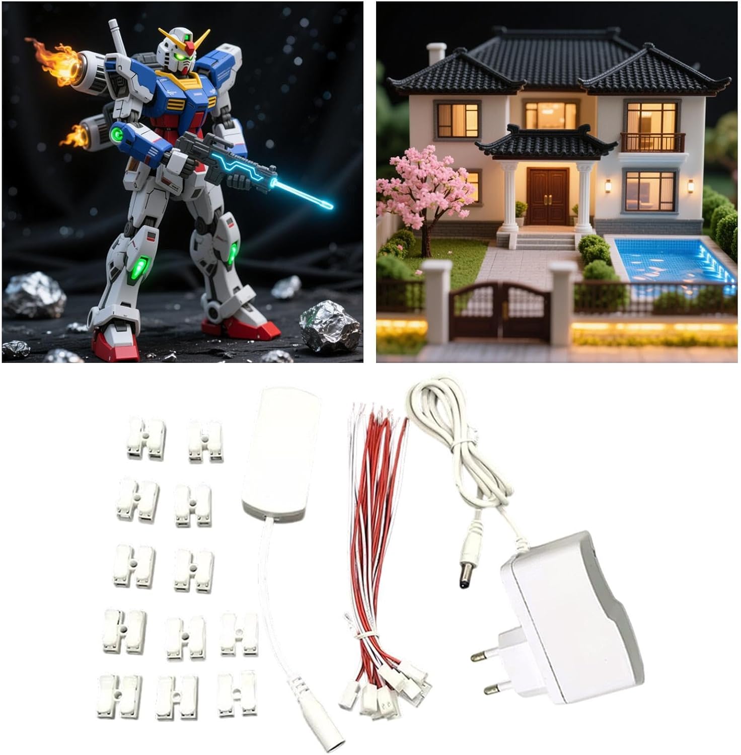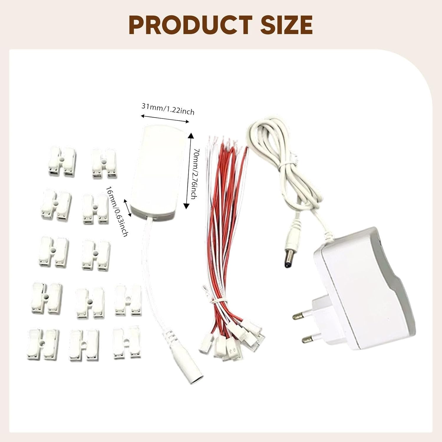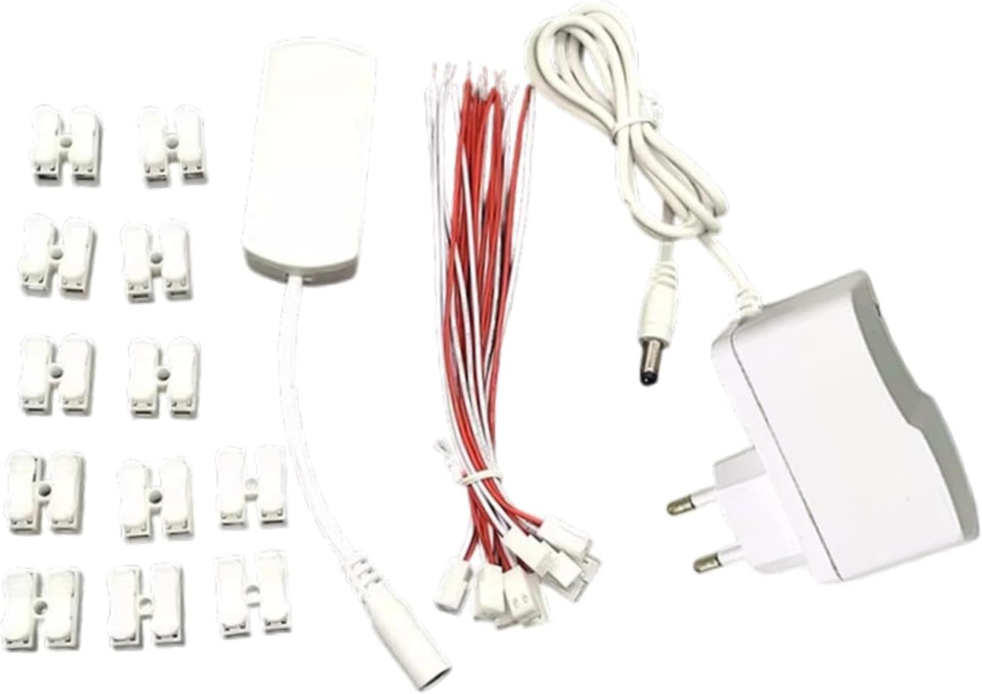Alimentatore per Luci in Miniatura Distributore di Corrente E Kit Cablaggio Accessorio per Trenini con Spina EU Adatto per Case Delle Bambole E Plasti, 12 Porte