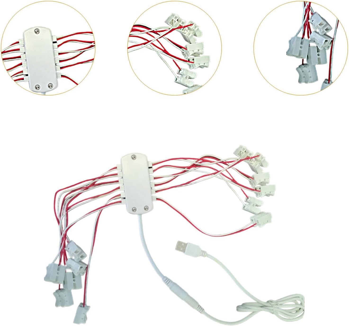 Ampia applicazione: ideale per plastici di treni, ferrovie in miniatura, diorami architettonici o illuminazione di scene (come lampioni stradali in miniatura, giardino, semafori) con fino a 12 connessioni LED Compatto e portatile: design leggero con un cavo USB da 1 metro per un posizionamento flessibile in spazi ristretti come display in miniatura o progetti fai da te Comodità Plug-and-Play: basta collegare l'ingresso USB a qualsiasi sorgente da 5 collegare le porte splitter, senza bisogno di attrezzi aggiuntivi Accessori a collegamento rapido: forniti con fili terminali e connettore a scatto per una rapida installazione senza saldature o cablaggi complessi Robusto e affidabile: l'alimentatore con cavo USB da 5 V (lunghezza del cavo 1 m) è dotato di 12 porte di uscita, questo alimentatore è ideale per la realizzazione di modelli in