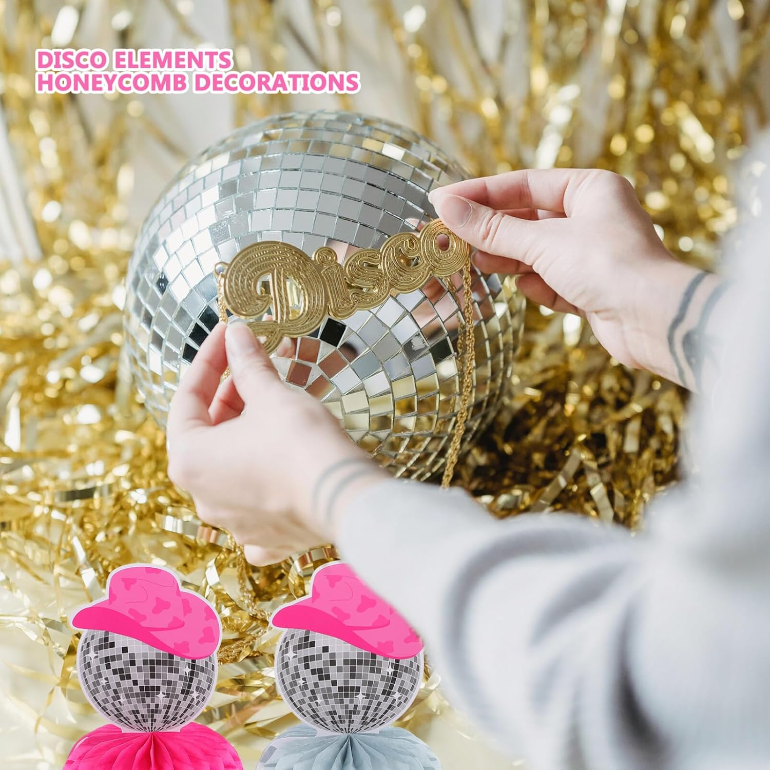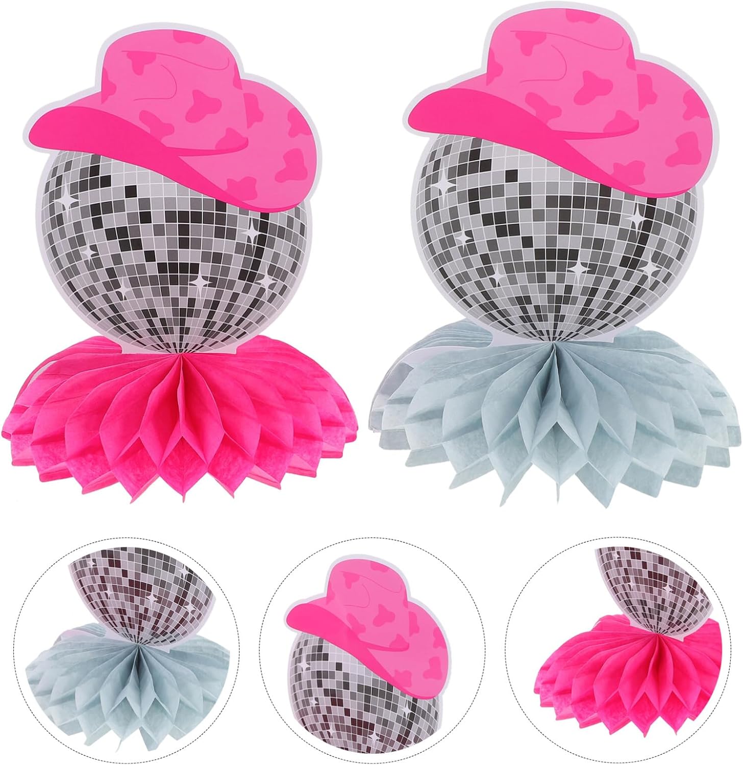 TOPPER DA TAVOLO PER FESTE DA COWGIRL OCCIDENTALE: queste decorazioni a nido d'ape sono fatte di carta, sicure e leggere, non facili da strappare e possono essere piegate per riporle facilmente. CENTROTAVOLA A SFERA A NIDO D'APE DA DISCOTECA: queste decorazioni centrotavola a nido d'ape sono progettate con elementi da discoteca che possono adattarsi bene alla festa. DECORAZIONI DA DISCOTECA: hanno un'ampia occasione applicabile, non solo adatte per feste a tema in discoteca, feste di compleanno, ma feste di Capodanno, feste di anniversario e così via. PICCOLE PALLINE DI CARTA A NIDO D'APE: questi centrotavola a nido d'ape da discoteca possono essere usati oggetti di scena fotografici da utilizzare per scattare foto, molto pratici. TOPPER DA TAVOLO PER FESTE ANNI '70: i decori in carta a nido d'ape possono essere posizionati scrivania, sul caminetto o appesi per decorare la parete.