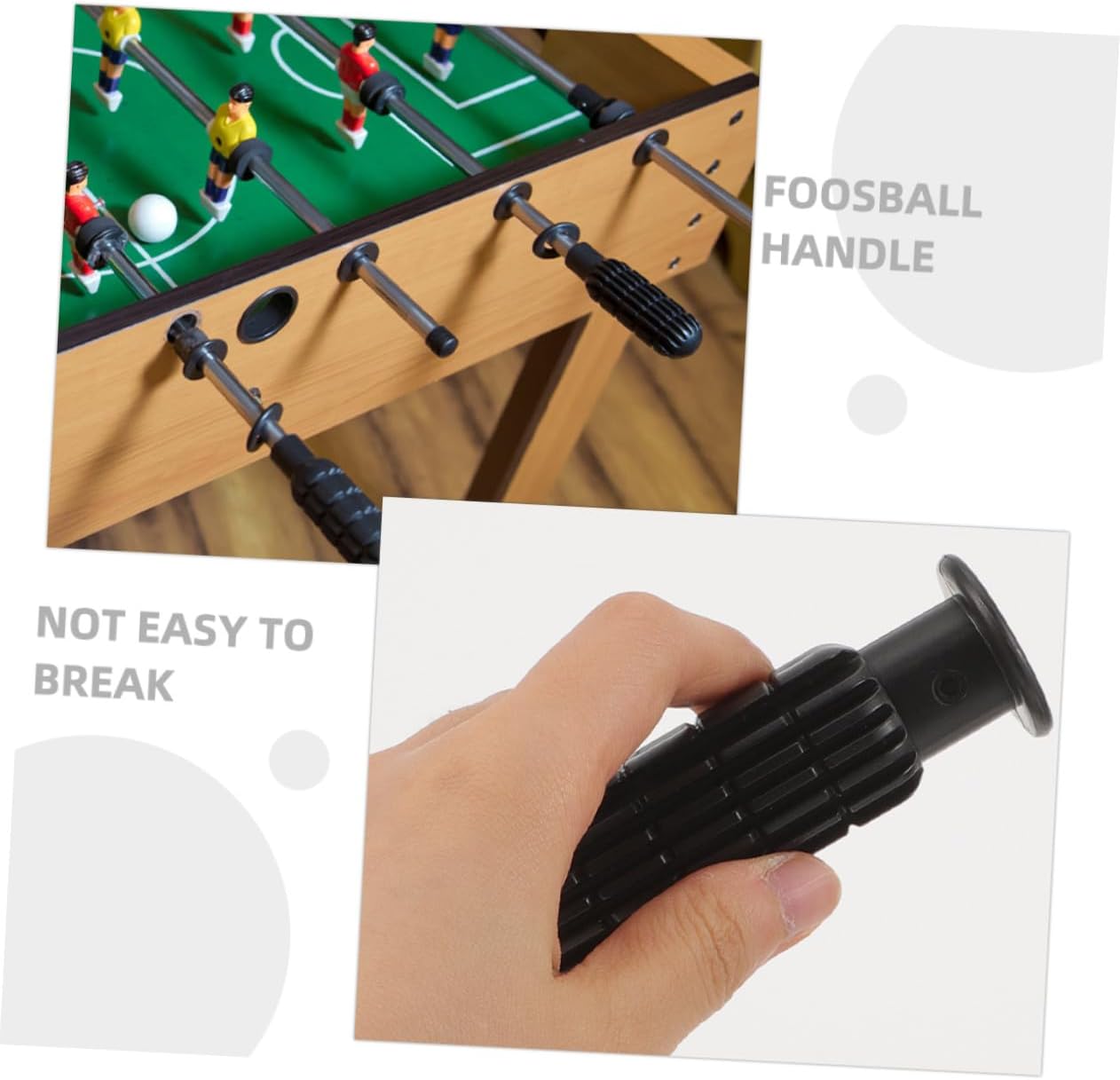 In qualsiasi momento e ovunque: puoi tenerli a casa e supportare il tuo gioco di calcio balilla sempre e ovunque, maniglia del tavolo da calcio balilla, maniglie di ricambio per calcio balilla Texture antiscivolo: le maniglie del calcio balilla possono impedire alle mani di scivolare, consentendoti di avere una buona presa, maniglie del calcio balilla, maniglia di ricambio in plastica del calcio balilla Impugnatura ergonomica: l'impugnatura ergonomica dal design studiato appositamente ti consente di impugnarla facilmente, per giocare meglio, impugnatura da calcio balilla, maniglie da calcio balilla Compatibile con la maggior parte: puoi ottenere queste maniglie per biliardino a un prezzo molto conveniente, compatibili con la maggior parte delle macchine da calcio sul mercato, maniglie per biliardino, parte dell'impugnatura per biliardino Utilizzo prolungato: le maniglie del biliardino in plastica resistente hanno una e sono antiscivolo, maniglie del biliardino sostituibili, piccola impugnatura del biliardino