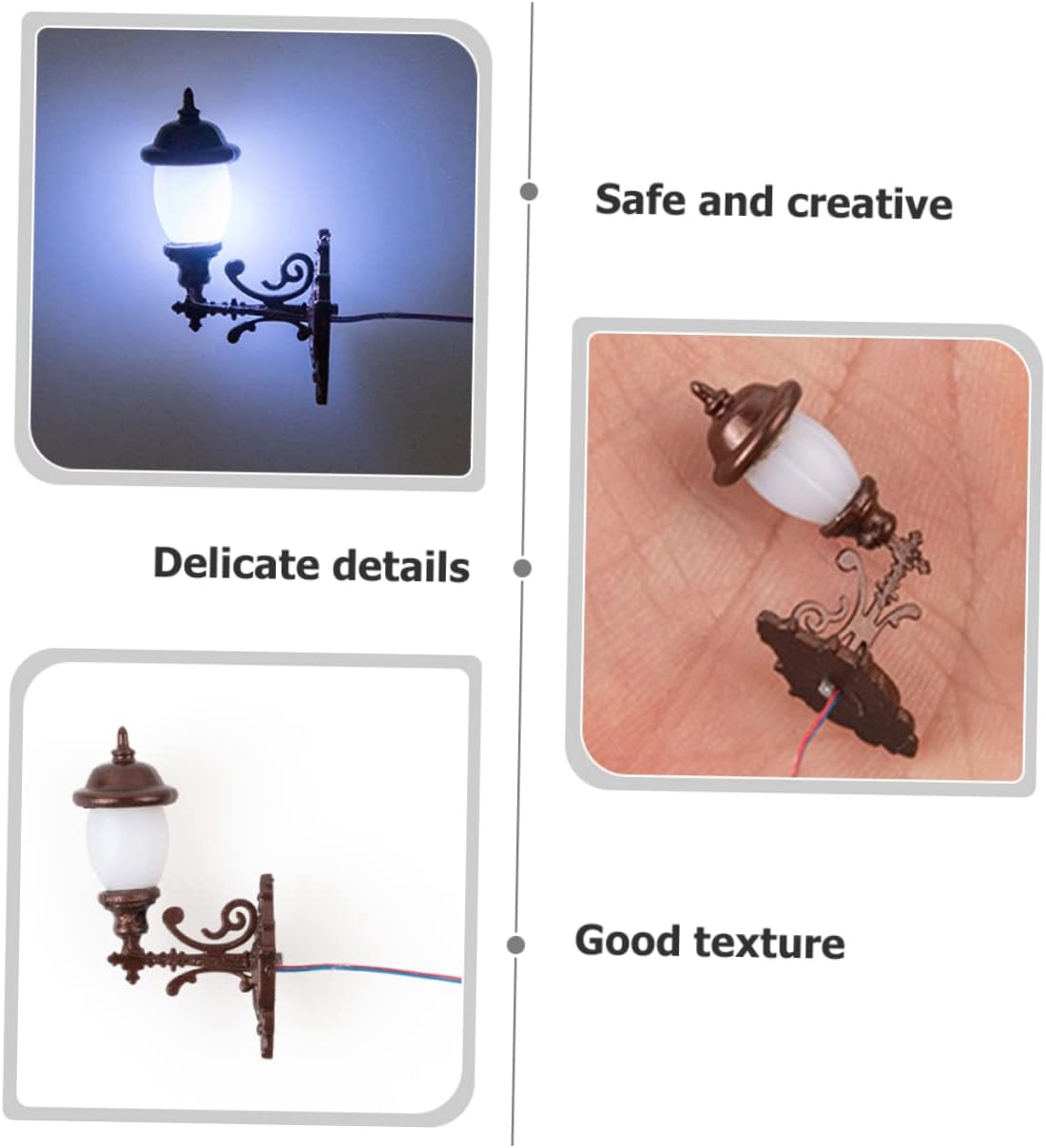 Mini lampada di simulazione: questo modello di lampada da parete in miniatura è un regalo fantastico per i tuoi amici o familiari a cui piacciono i mini mestieri. Borsa a tracolla: dimensioni compatte, molto delicate, le mini lampade da parete sono facili da installare e rimuovere. darti un'impressione visiva diversa. Modello di lampada per treno ferroviario-- ✨mini lampada di simulazione generalmente per la decorazione della scena e l'effetto di aumentare il livello della scena del tavolo di sabbia. Lanterna da tavolo per esterni: progettata appositamente per mini case, decorazioni per tavoli, creazione di circostanze romantiche e calde. Mini lampada da parete: un modello realistico di mini lampada da parete per l'arredamento di una mini casa, rende la tua mini casa più delicata.
