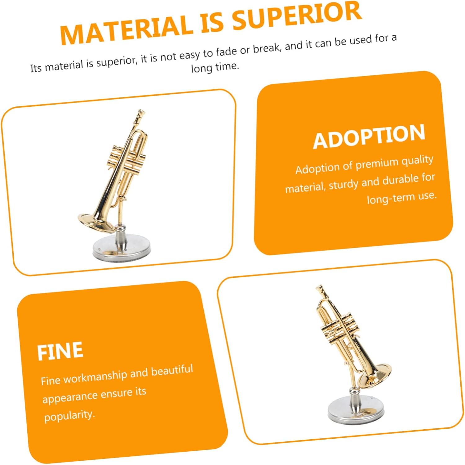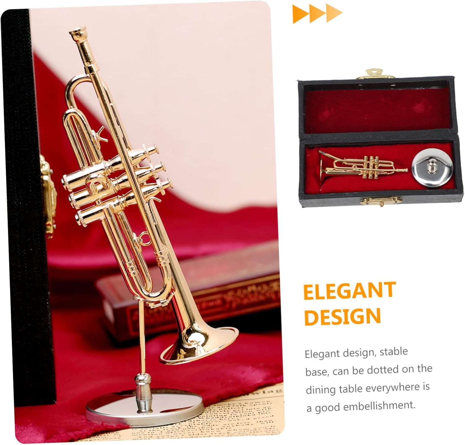 Pratico ornamento per tromba in miniatura: la superficie è lucida e liscia, e strutturata. posizionato saldamente e ben visualizzato. Strumento musicale: i giocattoli simulati di strumenti musicali possono concentrare l'attenzione bambini e coltivare l'interesse bambini per la musica. Decorazione della casa: giocattolo altamente simulato, il miglior regalo per la stagione della laurea, puoi regalarlo ai tuoi buoni amici a cui piacciono gli strumenti a fiato. Decorazione mini tromba: i prodotti sono squisiti nella lavorazione, nuovi e unici nell'aspetto, particolarmente delicati. Decorazione simulata a tromba: il prodotto è e puoi usarlo a lungo. l'artigianato del prodotto è superbo.