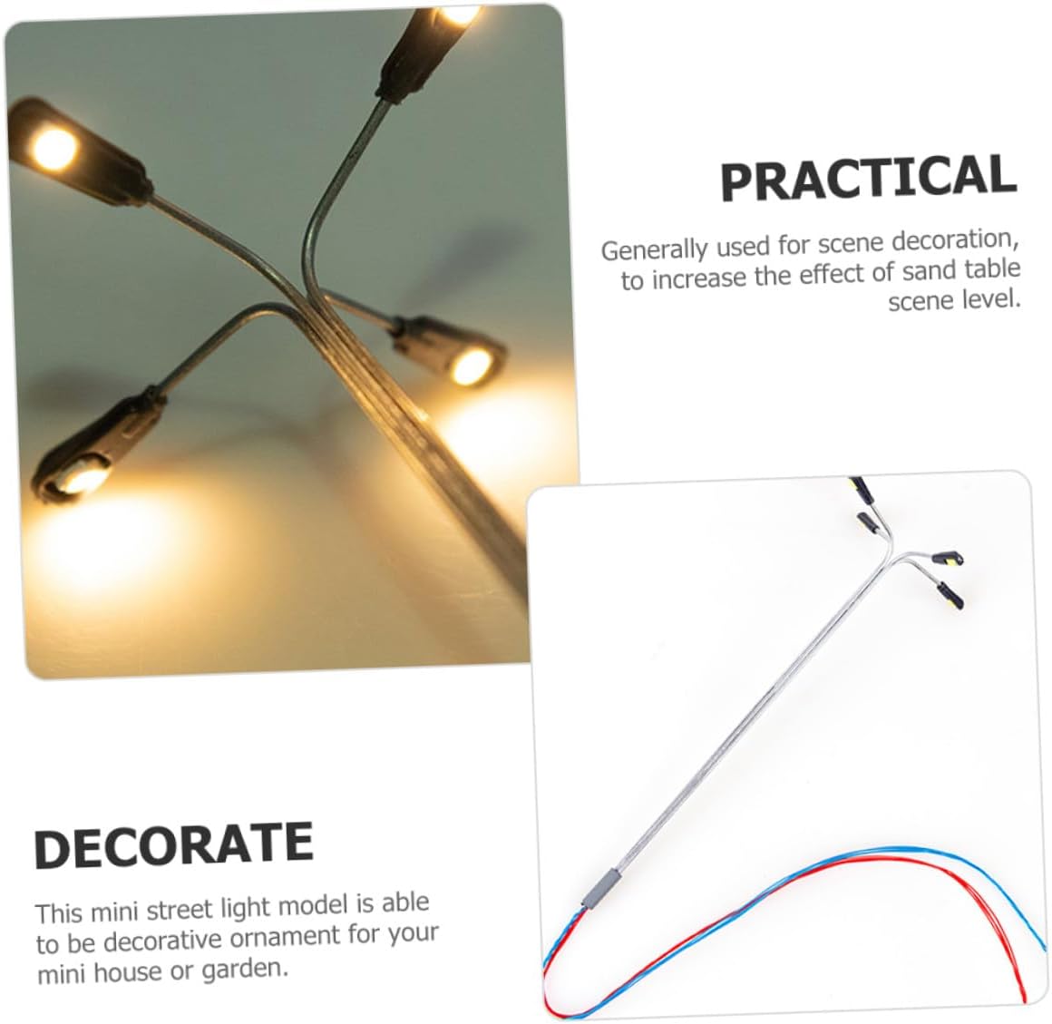Mini lampione fai da te: posizionalo nella tua mini casa o stanza per dettagli più realistici, rendi la mini casa più affascinante, mini lampione Materiali per modelli architettonici: questo mini modello di lampione può essere l'ornamento decorativo per il modello di interni della tua mini casa, luci in miniatura Modelli di lampioni stradali in miniatura: generalmente utilizzati per la decorazione di scene, per aumentare l'effetto del livello della scena del tavolo di sabbia, lampioni stradali in miniatura Lampada modello: adatta per mini case e decorazioni per tavoli di sabbia, ottima decorazione per la tua mini case, crea scene di vita colorate, lampioni in miniatura Piccolo lampione: con un design unico ed elegante, la tua casa in miniatura sembra più calda e alla moda, lampioni del villaggio