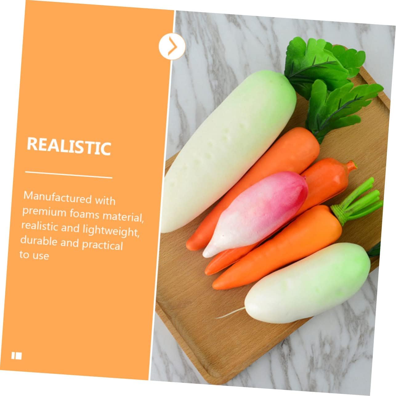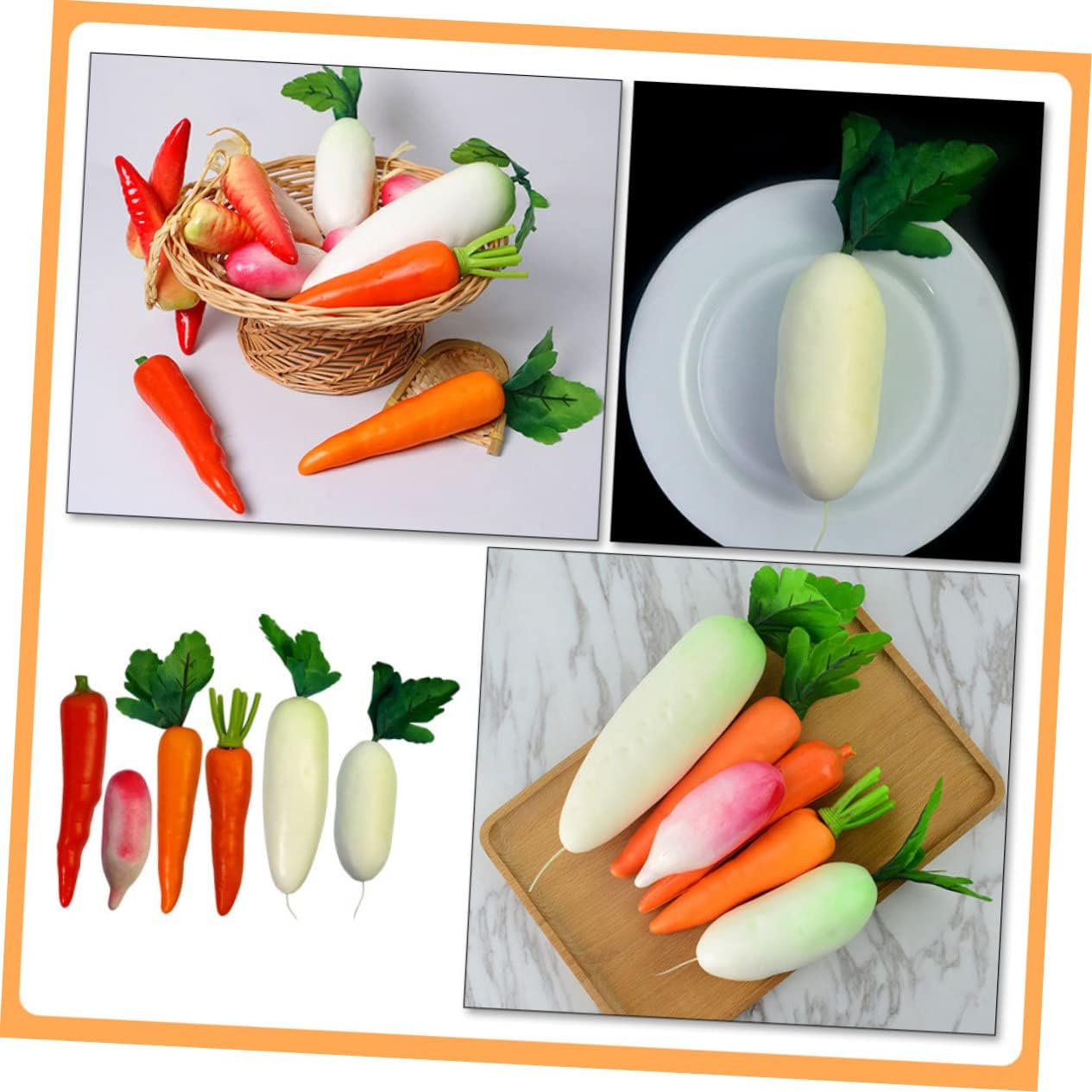 Ravanello realistico: i colori sono brillanti, puoi sentire meglio l'atmosfera festosa con i tuoi familiari e amici. Decorazione delle carote: sono abbastanza forti, non deformano o rompono facilmente e . Ravanello artificiale: la simulazione di ravanello e carota può essere utilizzata espositore per un supermercato o una vetrina. Cibo finto realistico: verdura realistica per l'esposizione nell'armadietto del negozio o semplicemente decorazione. può essere usato solo per essere espositivo, non per fare cose strane. Oggetti di scena decorativi per carote finte: oggetti di scena fotografici vegetali --- 🐰🥕 sono più facili da curare, più facili da mantenere e più convenienti rispetto alla verdura . progettato nel modo più reale possibile, che abbina alle dimensioni reali delle carote e sembra molto vivido.