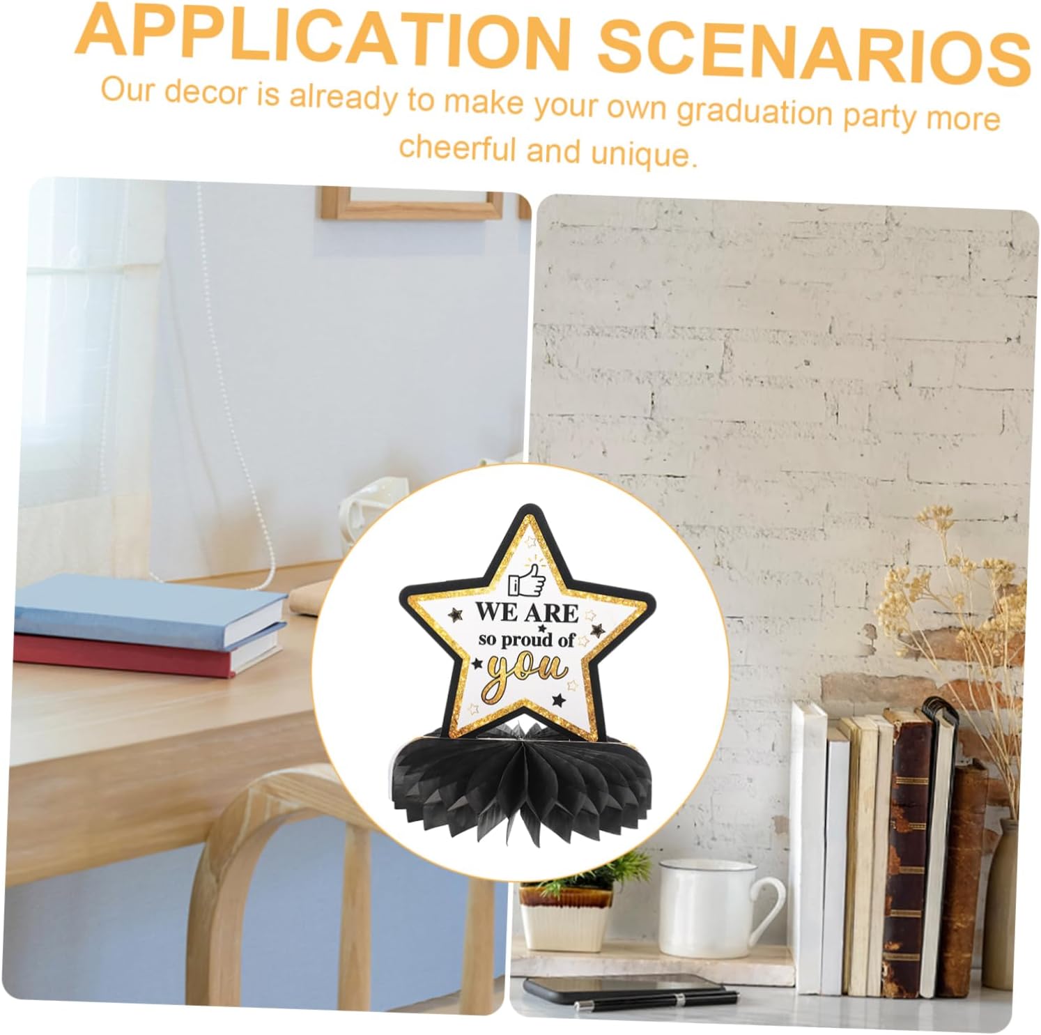 Decorazioni per la tavola: l'ornamento è realizzato in materiale eccellente, sicuro e di buona consistenza. Decorazioni dorate: fantastiche forniture per feste di laurea: questi centrotavola per tavolo di laurea squisitamente progettati con interessanti elementi di laurea in modo che tutti adoreranno questi design chic. decorare la tua casa e la tua festa con i nostri centrotavola a nido d'ape sarà un successo alla tua festa. Arredamento della scena della festa: il design classico della laurea contribuirà a creare l'atmosfera della festa di laurea; Festa : questo ornamento può essere utilizzato anche fondale fotografico e decorazione per interni o esterni. Complimenti nido d'ape grad: la pregevole fattura garantisce la stampa di motivi chiari e un design delicato dei dettagli, pratico da usare.