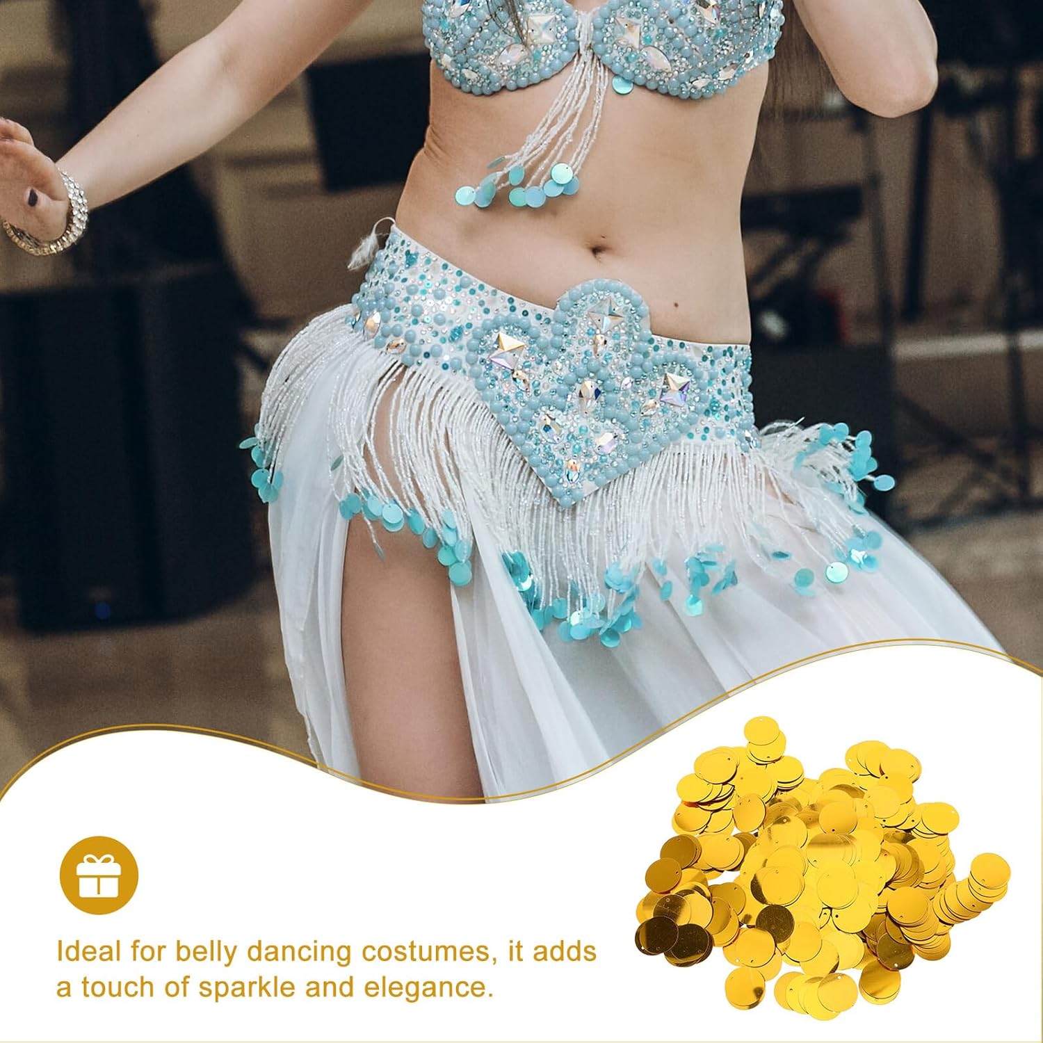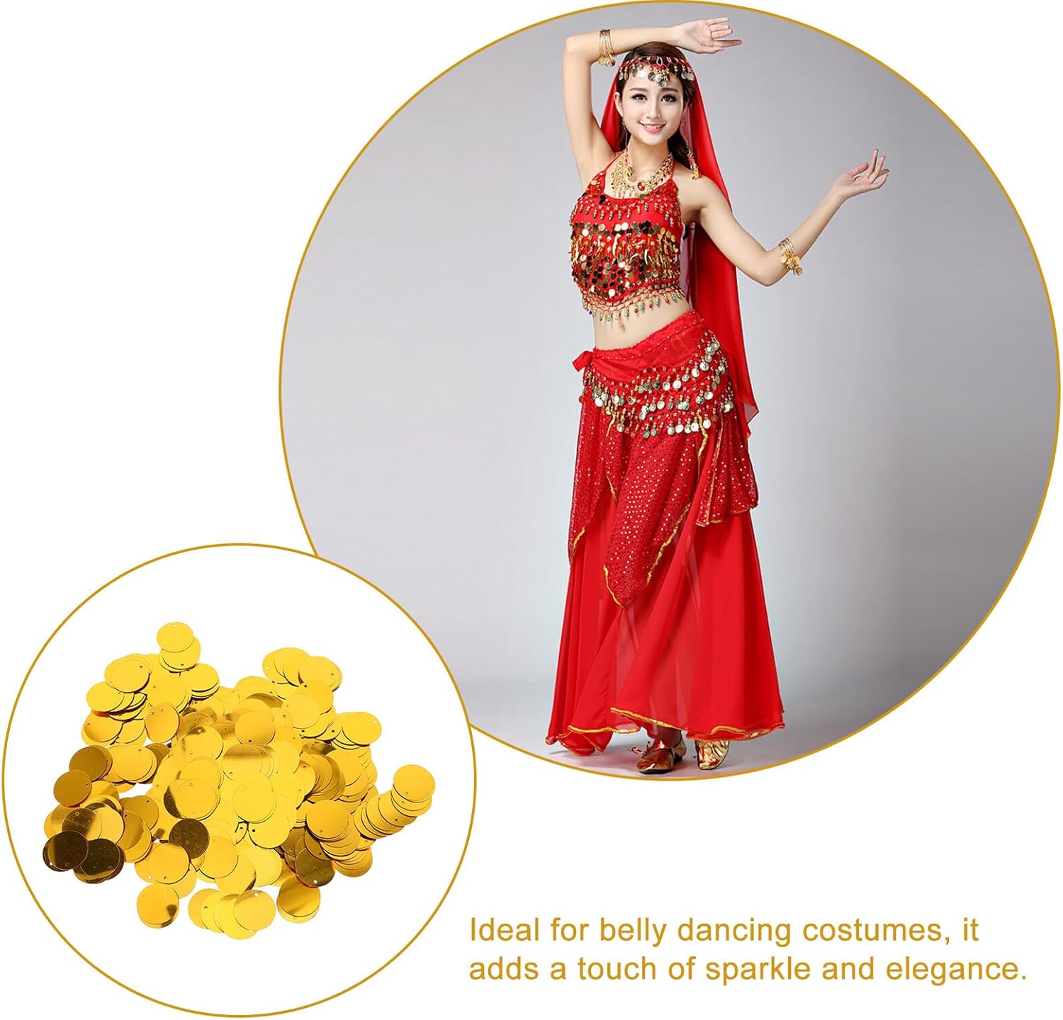 DESIGN UNICO CON PAILLETTES: L'abbellimento di paillettes con un unico foro aggiunge un elemento speciale alla gonna e ti fa risaltare sul palco; Paillettes rotonde glitterate, scaglie di paillettes. Durata affidabile: la lavorazione di alta qualità garantisce la longevità della gonna, così puoi ballare a lungo. Decorazione con paillettes, paillettes rotonde sciolte Adatto a varie occasioni: ideale per la danza del ventre, i balli latini e le esibizioni in club per evidenziare la tua eleganza e sicurezza in te stesso. Paillettes piatte e rotonde, finiture in paillettes cucite Versatile: ideale per la danza del ventre, i balli latinoamericani, le esibizioni nei club e altro ancora per evidenziare il tuo fascino e la tua autostima; paillettes rotonde, paillettes piatte e sciolte Materiale: la gonna è realizzata con materiali morbidi e confortevoli e offre una libertà di movimento ottimale. È tempestato di paillettes rotonde e decorato con paillettes