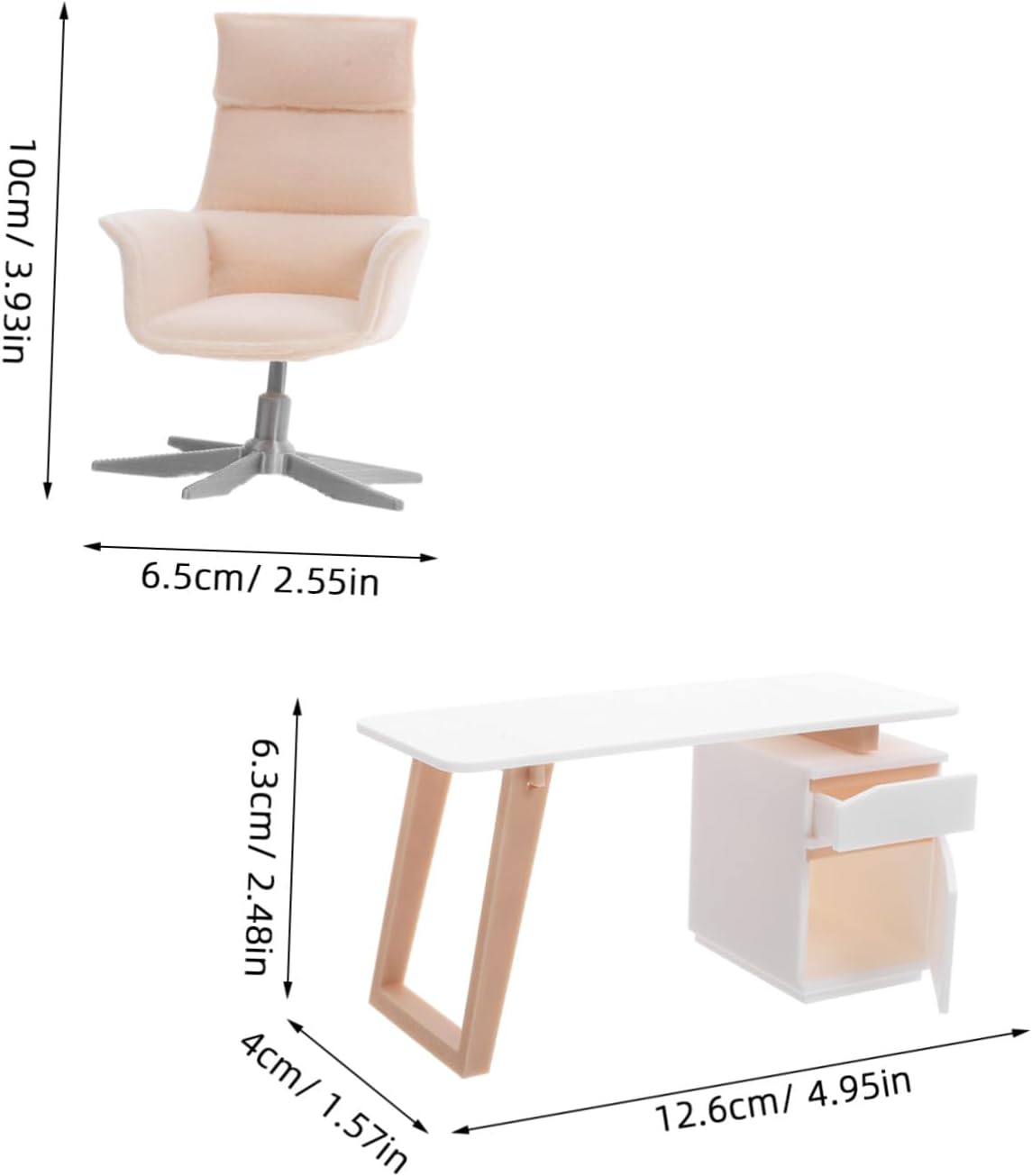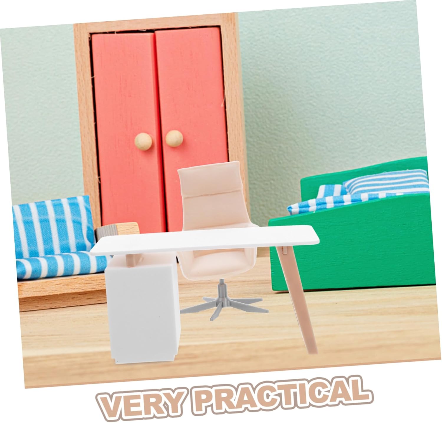 Mobili delle bambole in miniatura: il set mobili per ufficio in miniatura cattura scrivanie e sedie da ufficio reali, aggiungendo autenticità casa delle bambole, e sedie delle bambole in miniatura, scrivania per computer delle bambole Scrivania da ufficio in miniatura: realizzata con materiali eccellenti, questa scrivania in miniatura è costruita per durare, garantendo che rimanga intatta anche con frequenti manipolazioni o cambi scena, sedie in miniatura, per sedia da scrivania in miniatura Mobili per mini case delle bambole: realizzati con materiali robusti, questo set è costruito per resistere a un uso frequente, il che rende una affidabile per la decorazione a lungo termine case delle bambole, mini casa sedia, mini statuetta mobili Facile da riporre e trasportare: sue dimensioni ridotte e il design leggero rendono da trasportare e riporre, perfetto per gli appassionati case delle bambole, mini scrivania per case delle bambole, mini sedia da scrivania Scrivania per computer delle bambole: questo set scrivania e sedia da ufficio presenta una lavorazione realistica, che rende un'aggiunta a qualsiasi casa delle bambole o scena in miniatura, mini sedia delle bambole, mini mobili delle bambole