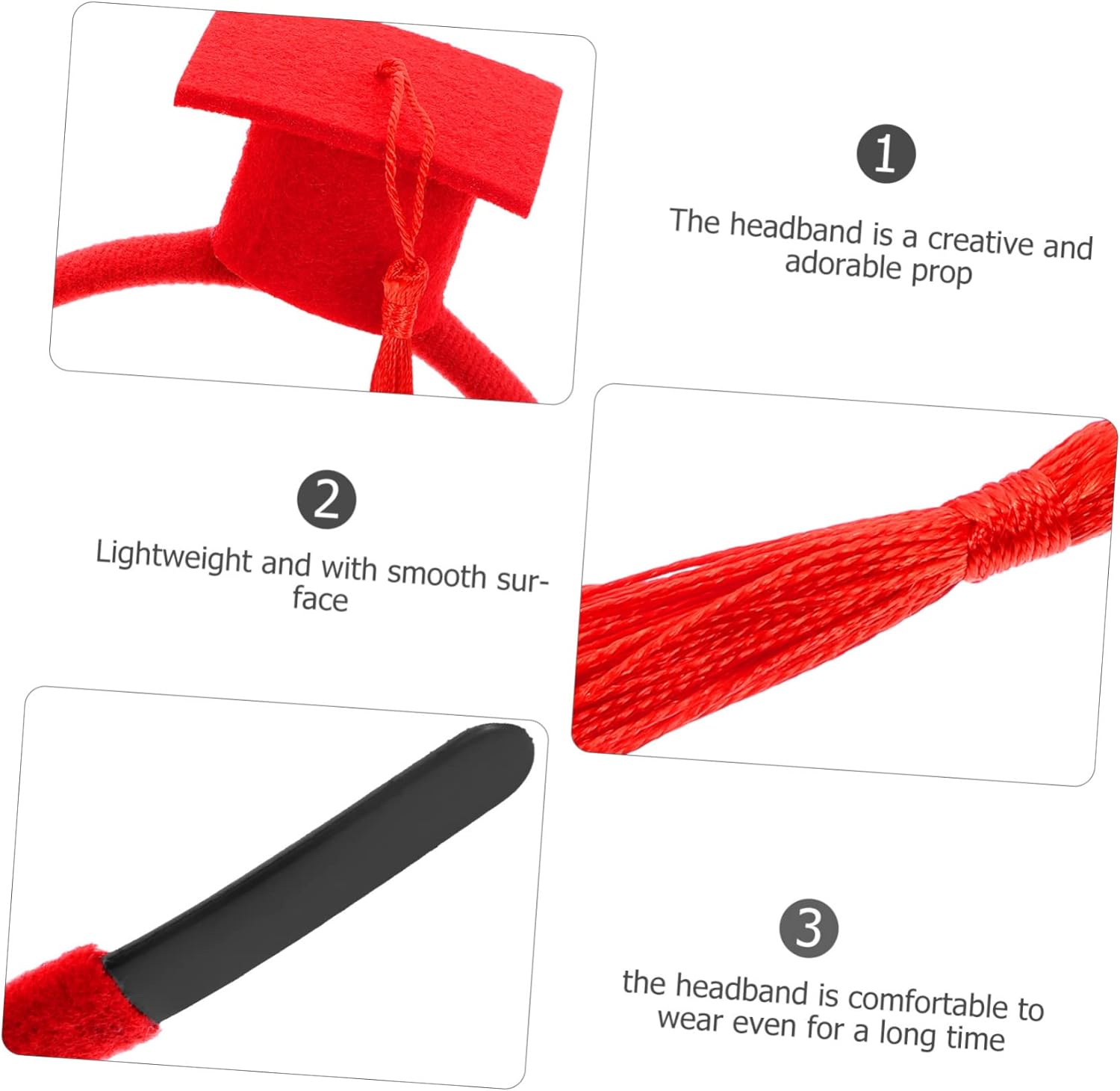 dei 1 × fascia per Caratteristiche - Dimensioni: 15,00X13,50X5,50 cm/5,89X5,31X2,16 pollici accessorio per costume di laurea -Materiale: fascia per la festa di laurea in plastica, feltro e peluche -Colore: fascia per da mini scapolo rossa -La fascia per è realizzata in materiale di prima qualità, non si rompe facilmente ed è leggera, non scivola facilmente dalla testa. -La fascia è un accessorio fotografico perfetto per la festa di laurea, per scattare foto con i tuoi amici e compagni di classe. -Decorato con un tocco da scapolo, il cerchietto è ancora più bello e ti fa apparire più attraente come accessorio per la festa di laurea. - La fascia per a tema laurea può essere un perfetto per i tuoi amici, compagni di classe, coinquilini e altri laureandi. -Questa fascia per la laurea ha le dimensioni giuste, è adatta alla maggior parte delle persone e non ti darà alcun fastidio. Informazioni sulle merci Copricapo per la stagione della laurea. La fascia per Graduation Elements è perfetta per renderti più attraente e adorabile in maschera, festival, feste in maschera, cosplay, spettacoli teatrali, ecc. Mini fascia per da scapolo. È anche un fantastico a per laureati, persone di tutte le età, in particolare donne. Accessorio per costume di laurea. La fascia per con cappello da laurea è delicata ed elegante, comoda da indossare.