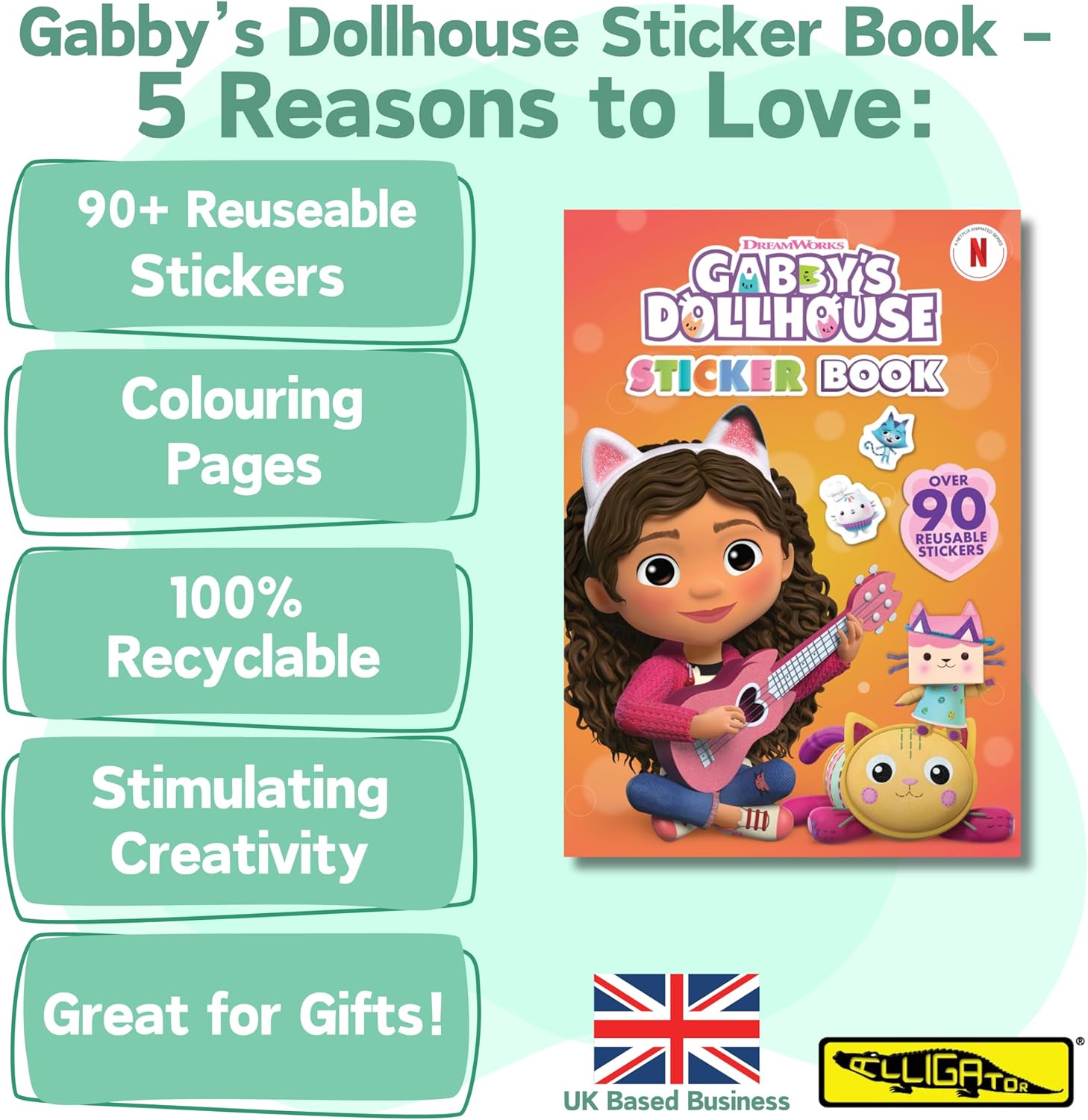 MAGICHE AVVENTURE PER LA CASA DELLE BAMBOLE DI GABBYS: Entra nell'incantevole mondo della casa delle bambole di Gabby con il nostro accattivante libro La casa delle bambole di Gabby! Ogni pagina è una porta d'accesso a storie divertenti e illustrazioni vivaci che i bambini adoreranno. Adesivi riutilizzabili: immergiti in un mondo di creatività con il libro di adesivi della casa delle bambole di Gabby. Con oltre 90 adesivi riutilizzabili, i bambini possono usare la loro immaginazione e creare innumerevoli scene e storie, incoraggiando al tempo stesso le capacità motorie e l'espressione artistica. Attività con gli adesivi: fuori dall'attaccare Il nostro libro di attività con gli adesivi offre sfide dinamiche e attività coinvolgenti. Dai giochi di abbinamento alle missioni di costruzione di scene, offre ore di divertimento interattivo e apprendimento per le giovani menti. Regalo perfetto per i fan di Gabby nel Regno Unito: cerchi i giocattoli per case delle bambole di Gabby nel Regno Unito? Non cercare oltre. Il regalo ideale per i fan dello spettacolo, questo libro di adesivi offre un mix di intrattenimento e creatività che renderà ogni occasione davvero speciale. Pagine da colorare: preparati a liberare l'artista che è in te con ulteriori emozionanti pagine da colorare che trasformano questo libro in un'esperienza a tutto tondo! Con 11 pagine da colorare, ti divertirai per ore!