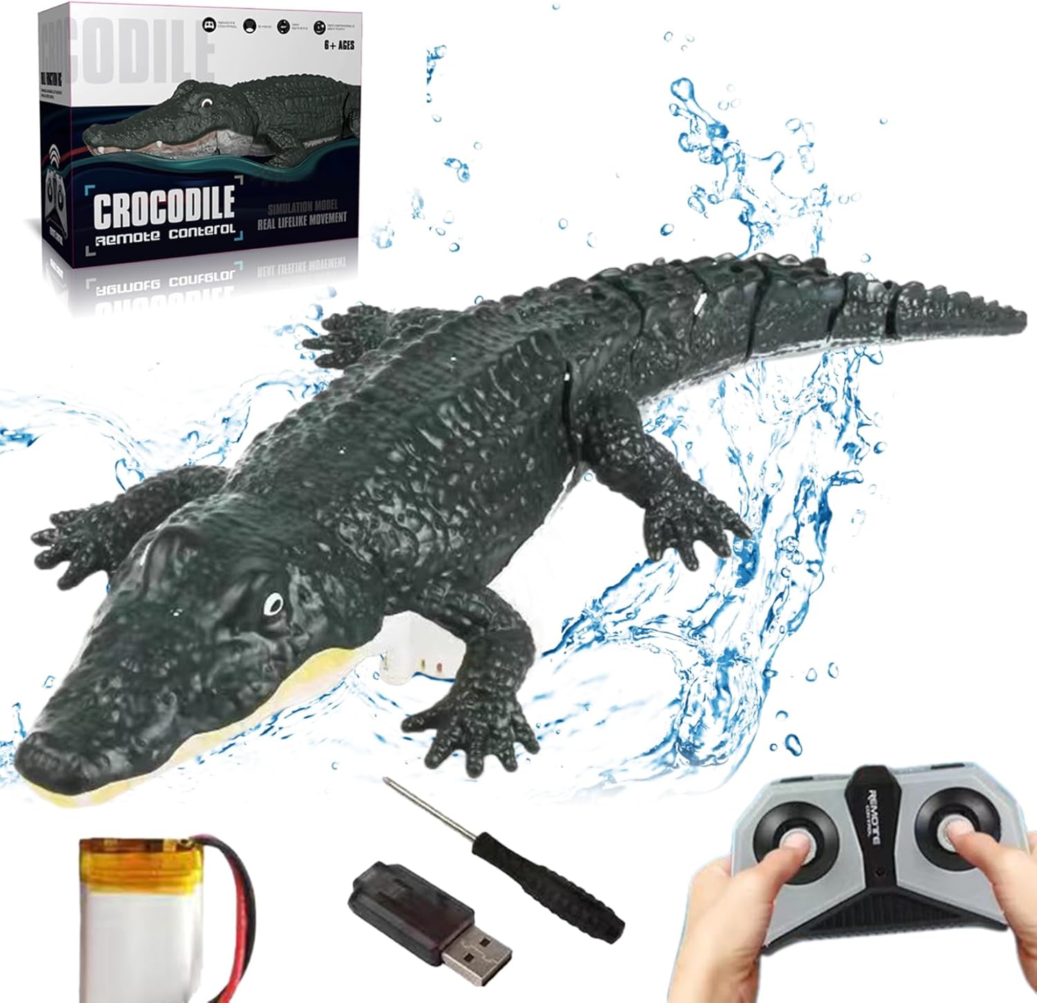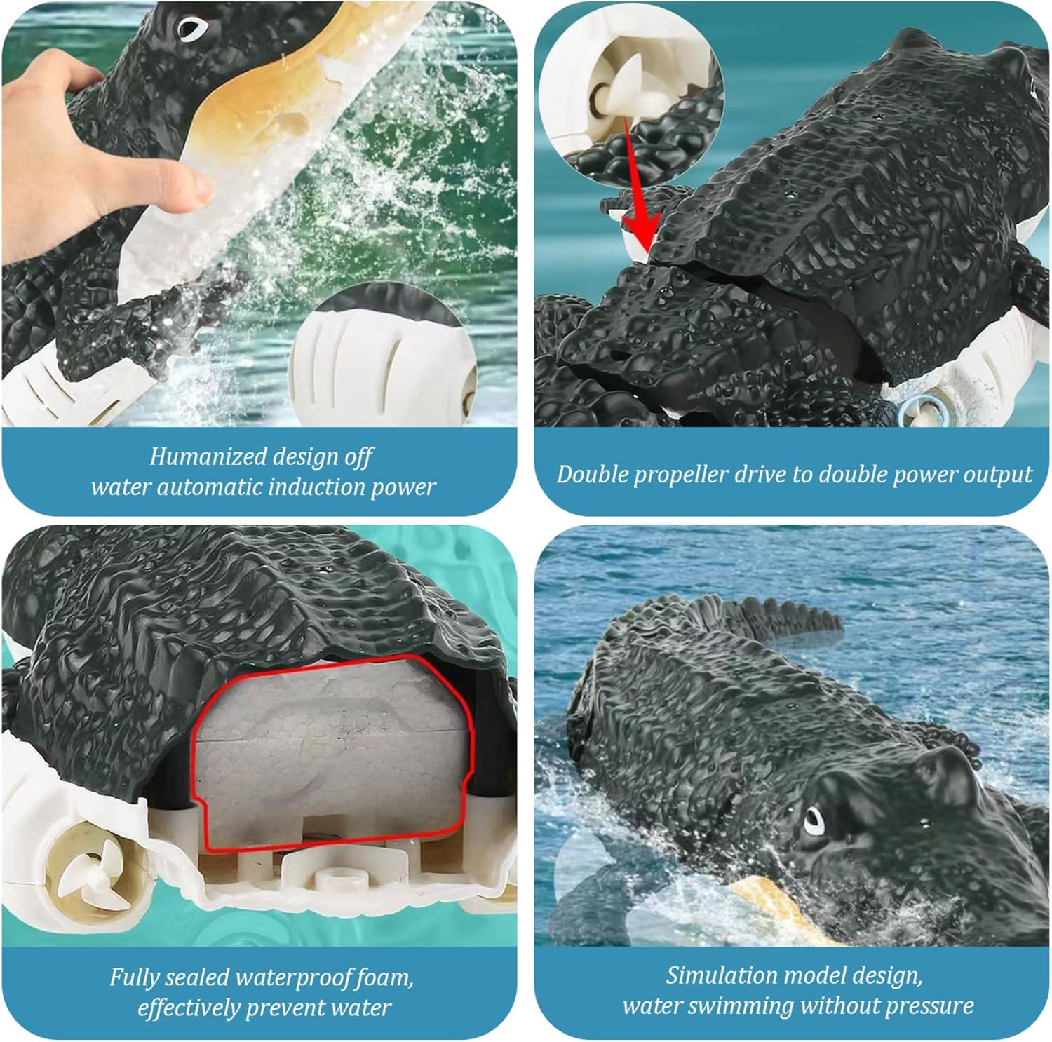 Impermeabile: migliorato con schiuma impermeabile completamente sigillata per impermeabilizzazione, questo giocattolo impedisce effettivamente l'acqua di entrare nel meccanismo interno..Goditi il gioco in piscina e vasche da bagno senza preoccupazioni. REMOTE CONTROL ALLIGATOR RC ALligator Giocattolo di alligatore altamente realistico: modellato sul coccodrillo con materiale plastico, questo giocattolo presenta dettagli realistici e un design a doppia propulsione..Il suo corpo aerodinamico e le articolazioni mobili sulla coda simulano il movimento del coccodrillo, mostrando vari percorsi d'azione..Testa di alligatore remoto alligatore RC Facile da utilizzare: l'alligatore del telecomando utilizza il rilevamento dell'acqua a doppia..L'albero dell'elica contatta l'acqua e può accendere rapidamente la potenza dopo aver rilevato il fluido..Utilizza anche doppie eliche equilibrate per rendere il motoscafo più senza intoppi senza paura di capovolgere..Testa di alligatore telecomandata Piscina Alligator Float Controllo telecomando a 2,4 GHz: l'alligatore del telecomando è dotato di un telecomando a 4 vie da 2,4 GHz per il funzionamento stabile, consentendo un facile controllo entro un intervallo di 50 metri..Mentre la testa di coccodrillo si muove attraverso l'acqua, puoi godere di un controllo preciso, guidandolo in, all'indietro, a sinistra e a destra attraverso l'acqua..Barca da telecomando a float pool di alligatori Versatilità: perfetta per scherzi, feste in piscina o semplicemente godendo un'esperienza unica di controllo remoto, la testa di alligatore galleggiante è versatile e divertente..Fa il miglior regalo per bambini e adulti e porterà gioia e risate a qualsiasi attività idrica..Barca da telecomando RC barca