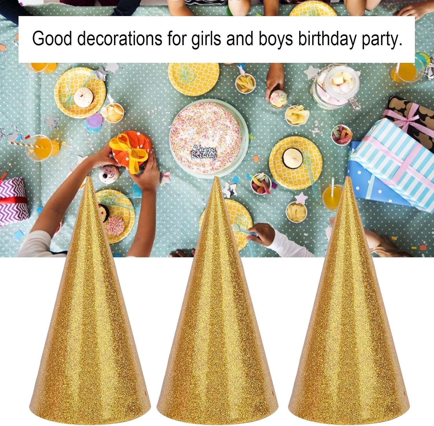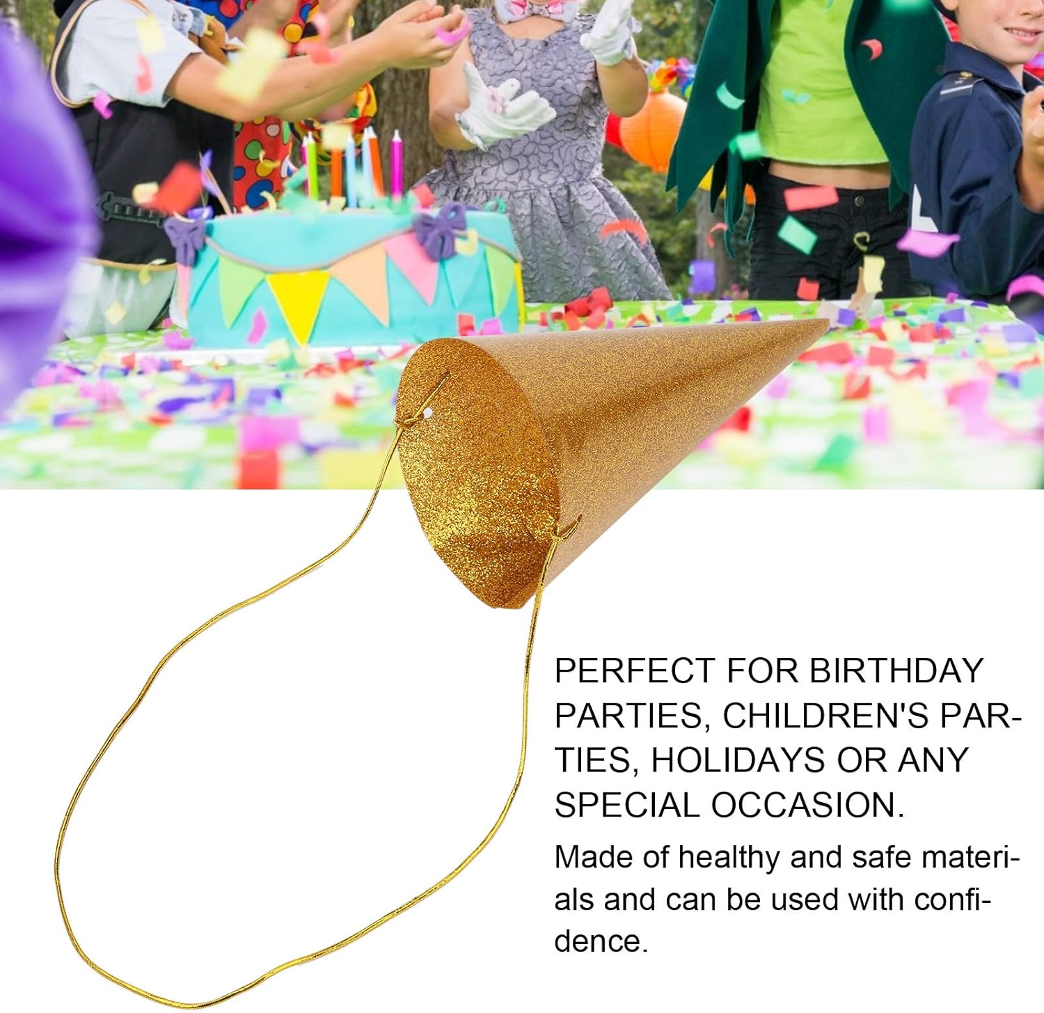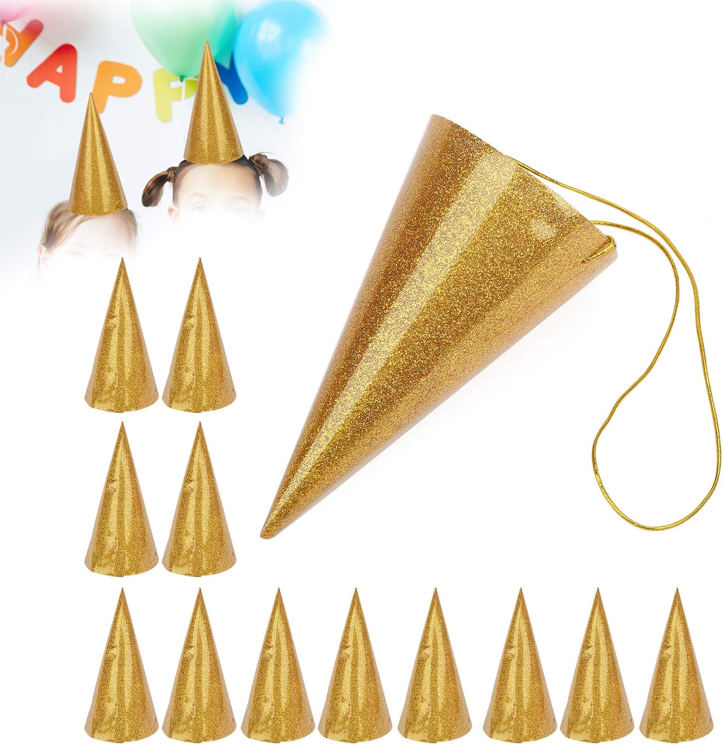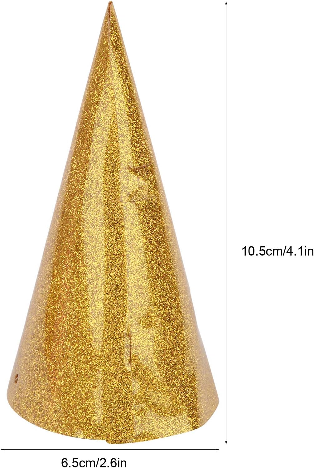 Specifica: Tipo di articolo: cappelli di compleanno a cono Colore opzionale: oro, argento, rosa Materiale: glitter Scopo: festa di compleanno/festival/adulti e bambini Dimensioni: ca. 10,5 x 6,5 cm/4,1 x 2,6 pollici Lista Imballaggio: 12 cappelli di compleanno a cono 1 x filo lungo