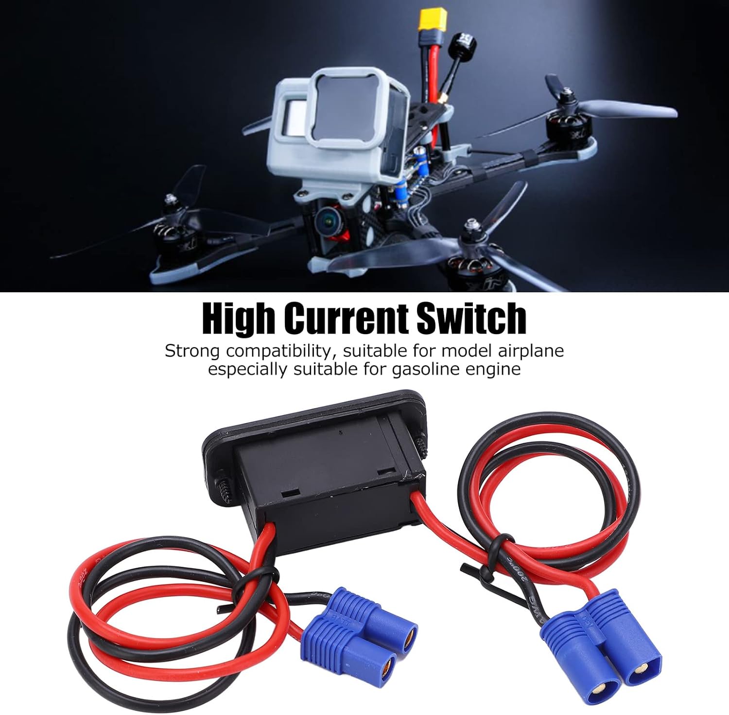 FACILE DA USARE: l'interruttore ad alta corrente è molto facile e comodo da installare e rimuovere. E può controllare efficacemente l'avvio e l'arresto dei giocattoli RC. FORTE COMPATIBILITÀ: la compatibilità dell'interruttore è elevata, adatta a vari modelli di auto telecomandate, modelli di aerei e modelli di navi. MATERIALE PREMIUM: questo interruttore RC adotta un filo in silicone super morbido, resistente alla corrosione, altamente flessibile, robusto, durevole e di qualità garantita. PROTEZIONE DELLA CASSA: Il guscio in materiale di alta qualità può impedire che i cavi siano esposti all'esterno e anche impedire che l'alimentatore causi danni al corpo umano. PESO LEGGERO: l'interruttore ad alta corrente pesa solo 31 g / 1,09 once. Quindi è conveniente e fa risparmiare lavoro mentre controlla in modo efficiente le auto RC.