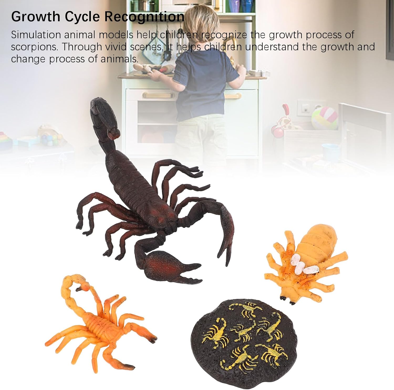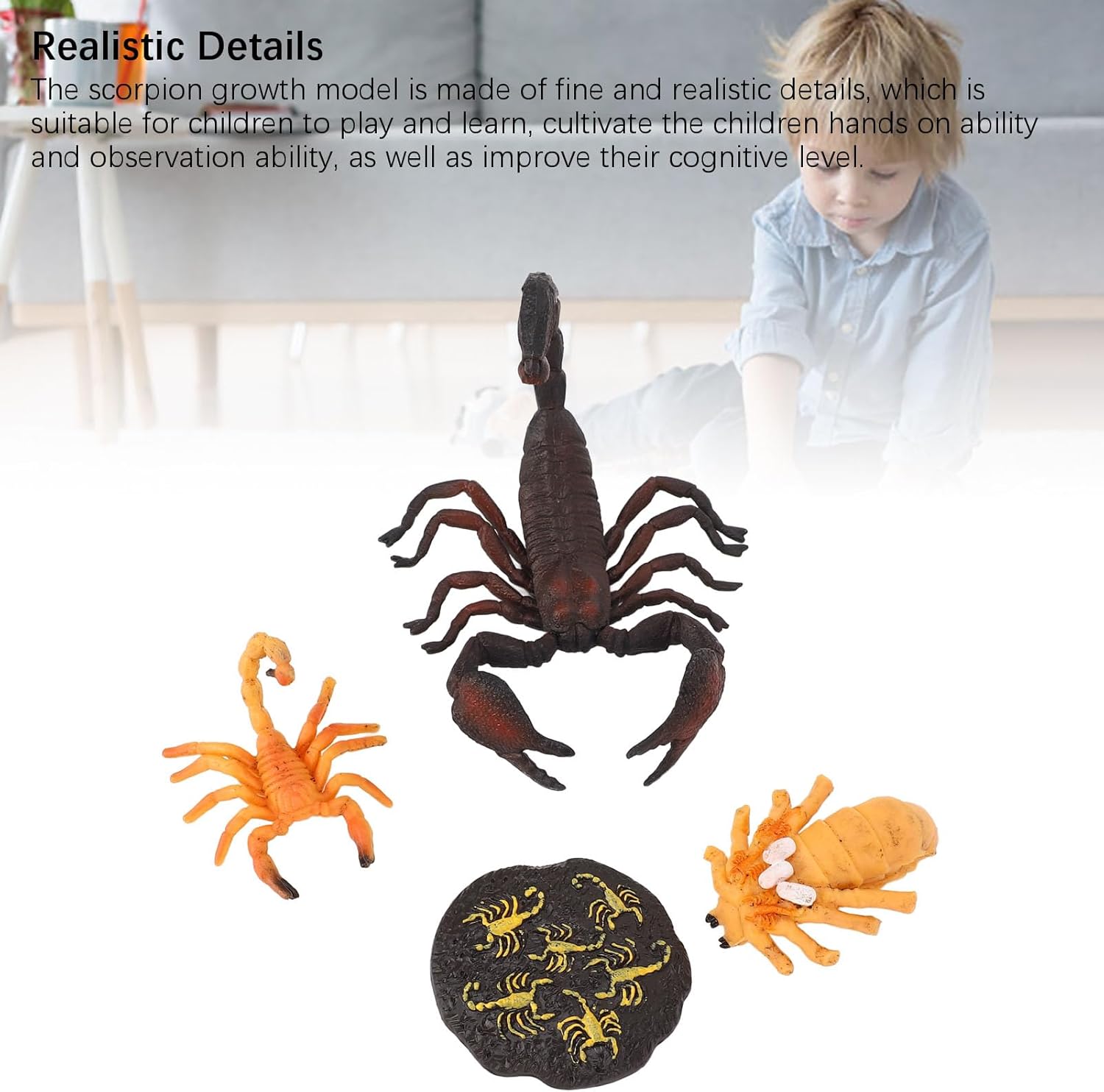 [Design flessibile del modello Scorpion] In questo giocattolo, questo giocattolo motiva la curiosità e l'immaginazione del bambino. [Rilevamento del processo di crescita degli animali] I modelli di simulazione aiutano a comprendere il processo di crescita degli scorpioni e a migliorare la conoscenza dello sviluppo degli animali. [Dettagli e apprendimento precisi] Con dettagli realistici, questo modello promuove il gioco, l'osservazione e il miglioramento cognitivo. [Tempo di gioco sicuro e protetto] soddisfa gli standard di sicurezza dei giocattoli per bambini e offre ai genitori tranquillità durante il gioco. [Apprendimento ecologico interattivo] fornisce ai bambini un'esperienza coinvolgente per conoscere l'ecologia e il regno animale.