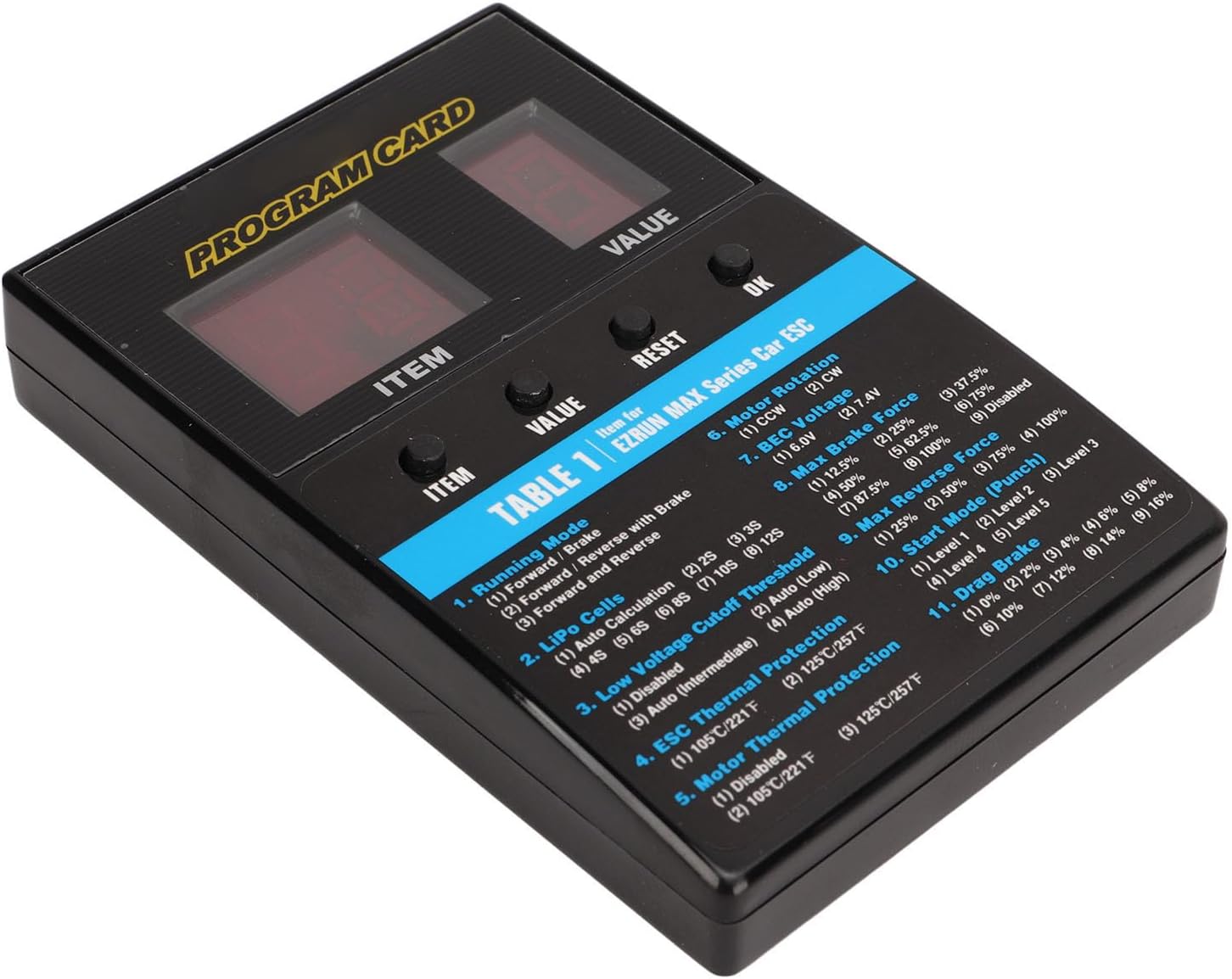 [Scheda di programmazione versatile] Programma programmato - Programma senza problemi. [Compatibilità migliorata] Compatibile con V1 V2, Flyfun V5, Xerun, Ezrun, Quicrun e ESC. [Funzionalità estesa] supporta vari contenuti funzionali per diverse serie ESC per soddisfare i requisiti di programmazione. [Solust Power Supper] offre prestazioni stabili e affidabili per garantire una programmazione liquida. [Sostenibile] materiali sostenibili per un uso e affidabilità più lunghi.