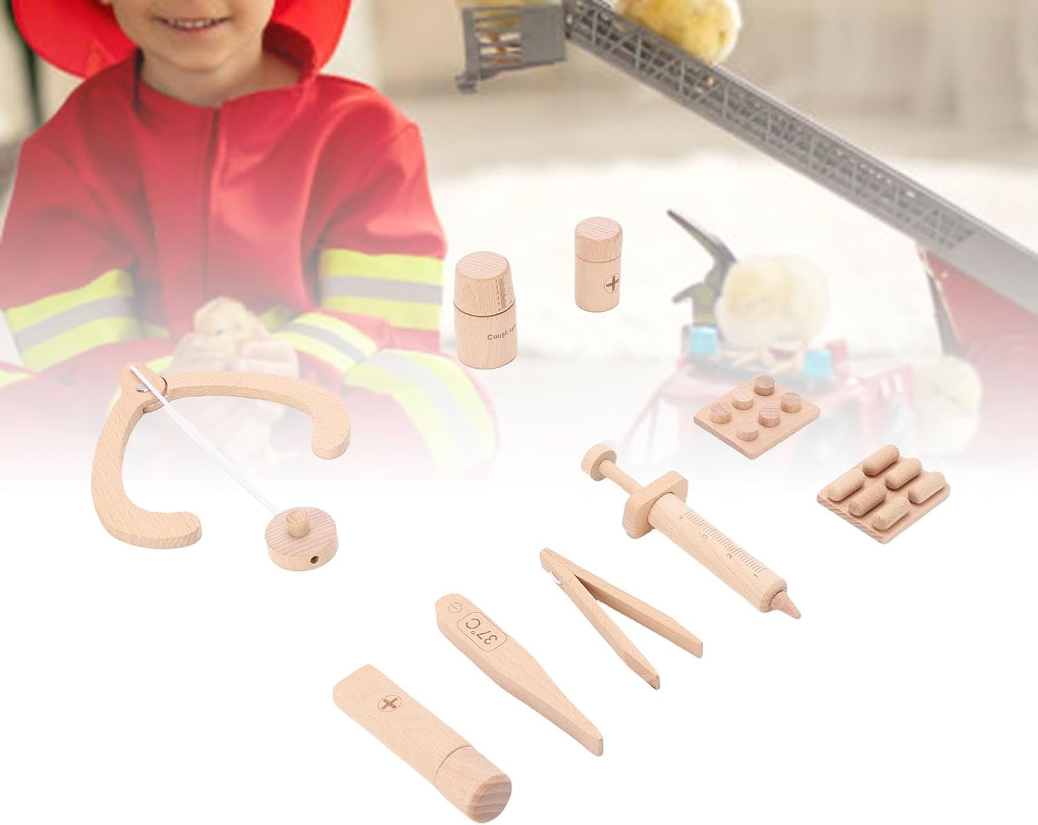 Gioco di ruolo fantasioso: questo set da gioco da dottore in legno per bambini è progettato per soddisfare le esigenze di gioco di ruolo dei bambini in età prescolare, favorendo la creatività e l'immaginazione. I bambini possono mettersi nei panni di un medico. Essenziale per il gioco interattivo: adatto ai bambini che amano giocare in casa, questo set da gioco interattivo consente ai bambini di travestirsi da dottori. Promuove le abilità sociali mentre si impegnano nel gioco cooperativo, condividono esperienze ed esprimono empatia verso gli altri. Materiale sicuro ed eccellente: realizzato in legno di faggio, questo set di giocattoli garantisce sicurezza e non tossicità per i bambini dai 2 ai 6 anni. I genitori possono fidarsi della sua robustezza e struttura, che lo rendono una scelta affidabile per il gioco quotidiano. Elementi di progettazione educativa: lo stetoscopio e altri strumenti medici non sono divertenti ma anche educativi. Aiutano a introdurre i bambini ai concetti medici di base, favorendo la loro comprensione della salute e l’importanza dei medici nella società. Migliora le capacità motorie: i blocchi di legno e gli accessori visivamente accattivanti nel set da gioco sono progettati per aiutare a migliorare la coordinazione occhio-mano dei bambini. Coinvolgono le piccole mani in attività divertenti e stimolanti che sviluppano le capacità motorie suscitando un divertimento senza fine.