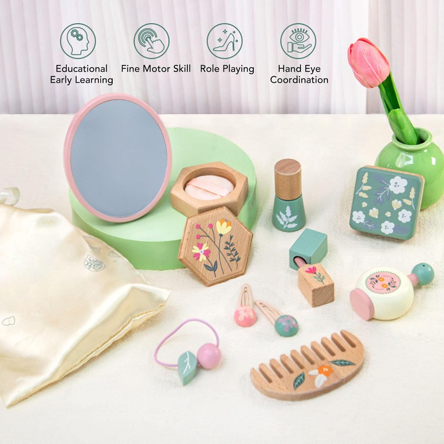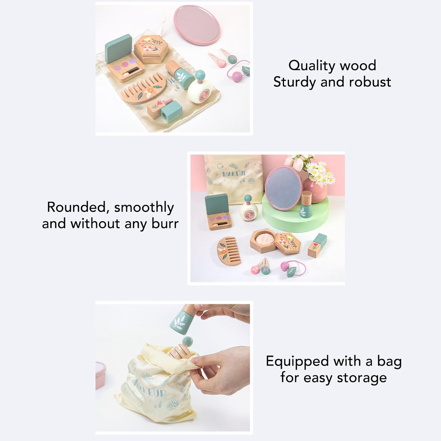 [Positivo gioco di ruolo] Incoraggia le ragazze ad abbracciare il gioco di ruolo e il travestimento, promuovendo la fiducia in se stessi, l'indipendenza e l'esplorazione gioiosa. Con il suo design delizioso, questo set di giocattoli per il trucco in legno è una scelta ideale per il compleanno o le vacanze per le ragazze da amare. [Spark Imagination] Un set di campeggio in legno meravigliosamente realizzato che stimola la creatività e l'immaginazione delle ragazze durante le avventure di gioco di ruolo. [Divertimento senza fine] include una varietà di oggetti per il trucco come ombretto, polvere, rossetto e profumo per ore di gioco divertenti e fantasiosi. [Design durevole] Fatto da robusto Beechwood e MDF, questo set di giochi per salone di bellezza è costruito per durare, facile da pulire e sicuro per i bambini.