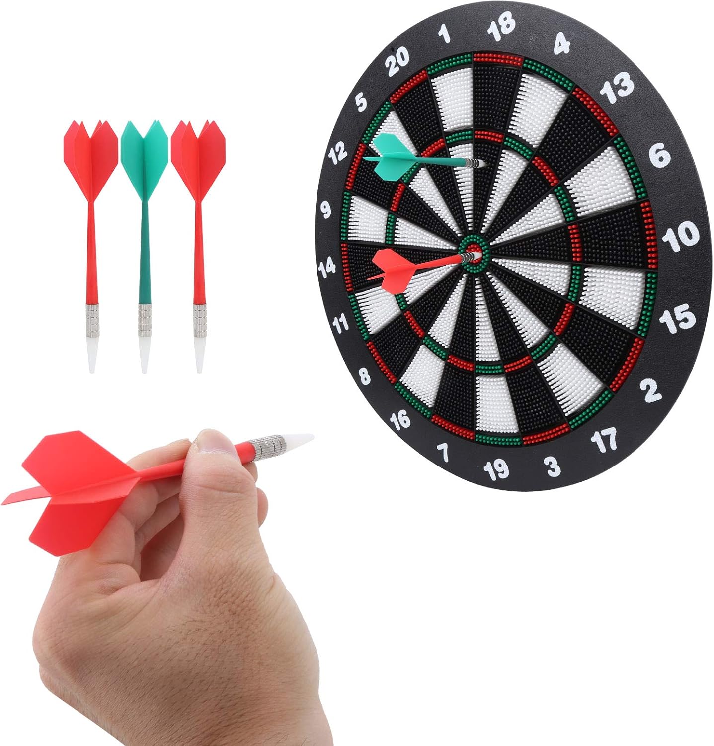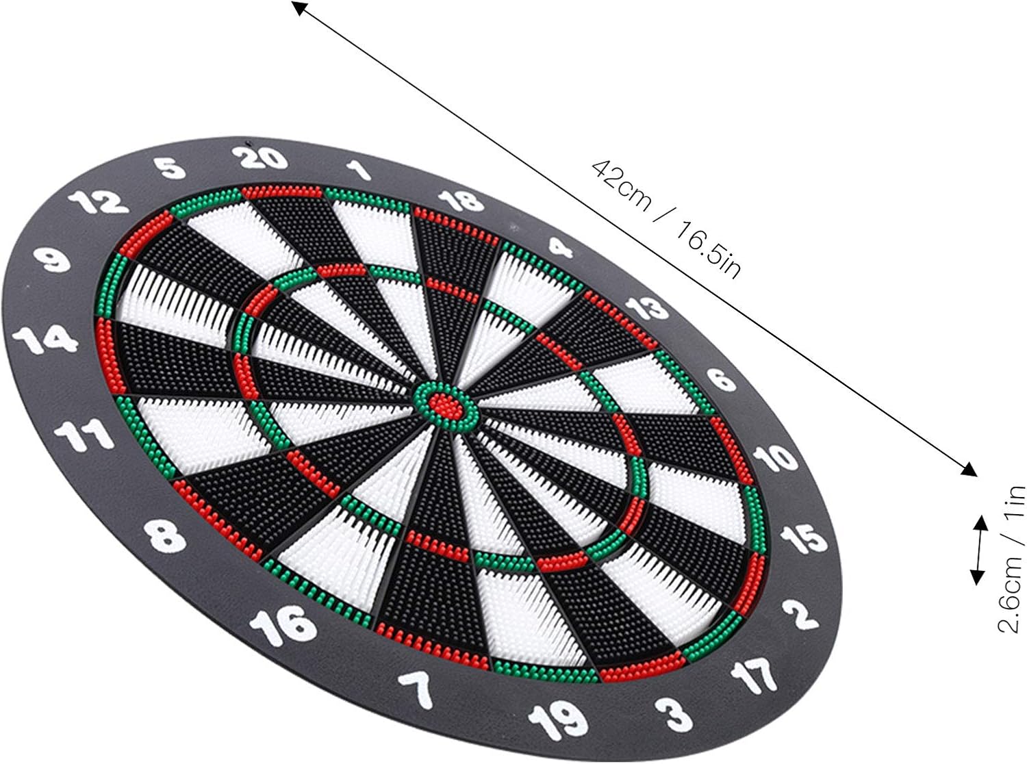 [Gentle nei dintorni]: il design della punta morbida garantisce la sicurezza dei mobili e delle pareti, perfetta per l'uso domestico. [Materiale resiliente]: Dartboard offre un forte ritorno di rimbalzo, con colori vivaci per un'esperienza di gioco attraente. [Uso sostenibile]: il design riutilizzabile estende la vita del prodotto, garantendo il divertimento a lungo termine. [Facile da configurare]: supporto posteriore in metallo incluso per un'installazione senza sforzo su superfici piane, per un gioco immediato. [Build]: la costruzione in plastica premium fornisce durata e portabilità, ideale per feste o riunioni.