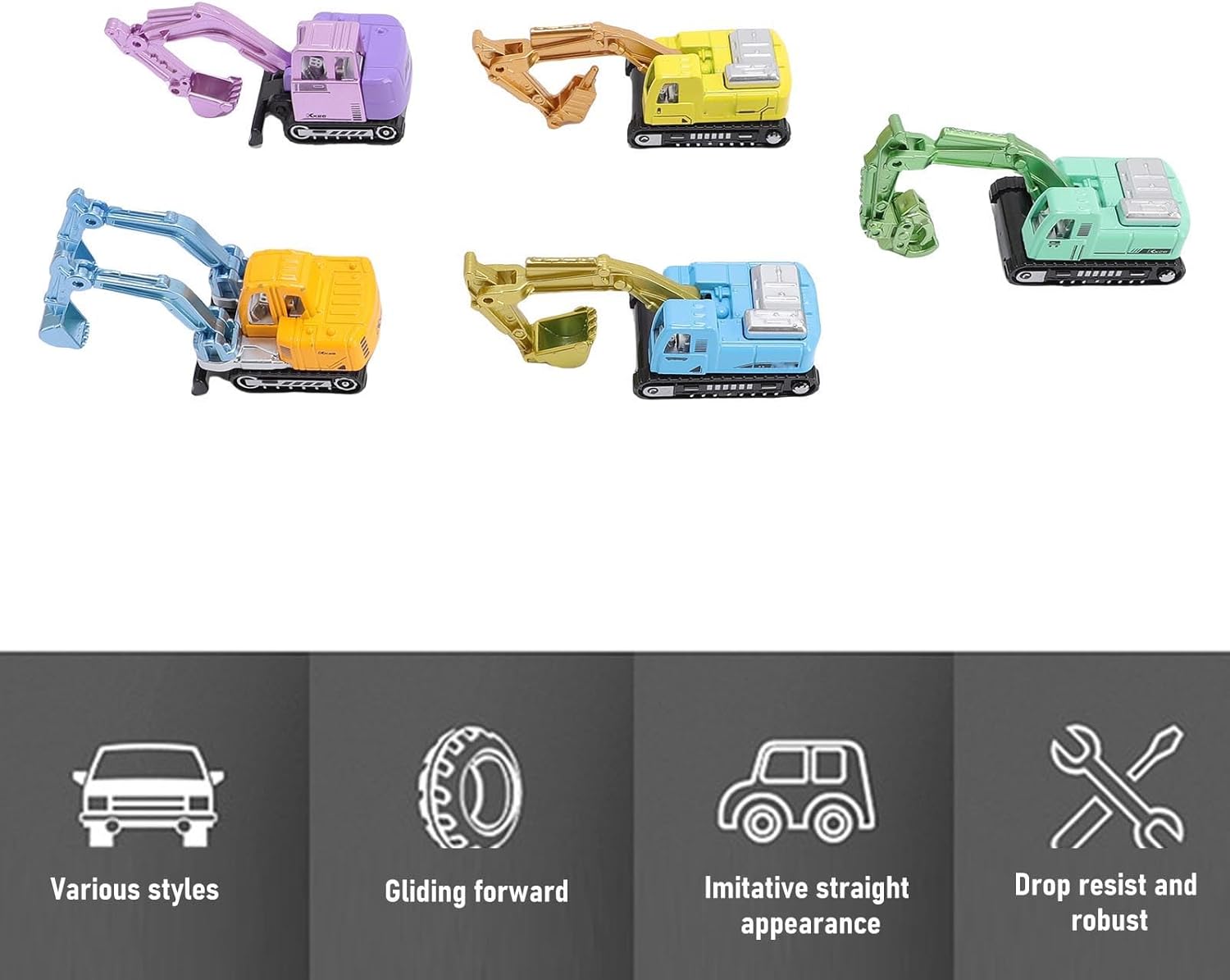 [Play interattivo] Ogni escavatore ha un gancio mobile per scavare e sollevare realistici scenari di ingegneria e divertimento. [Aumenta le capacità motorie] Per piccole mani, questi escavatori aiutano a migliorare le capacità motorie e promuovere il gioco di costruzioni immaginative. [Costruzione durevole] Realizzati in solida lega e plastica, questi giocattoli resistono a sessioni di gioco interne ed esterne energiche. [Ideale] Con colori vivaci, questa collezione di scavatori a 5 pezzi è un per i bambini che adorano i veicoli da costruzione. [Set di escavatori diversi] Set di giocattoli di escavatore è dotato di 5 colorati unici e dettagliati realizzati in lega e plastica durevoli.