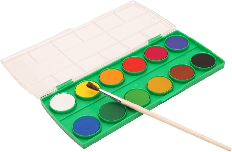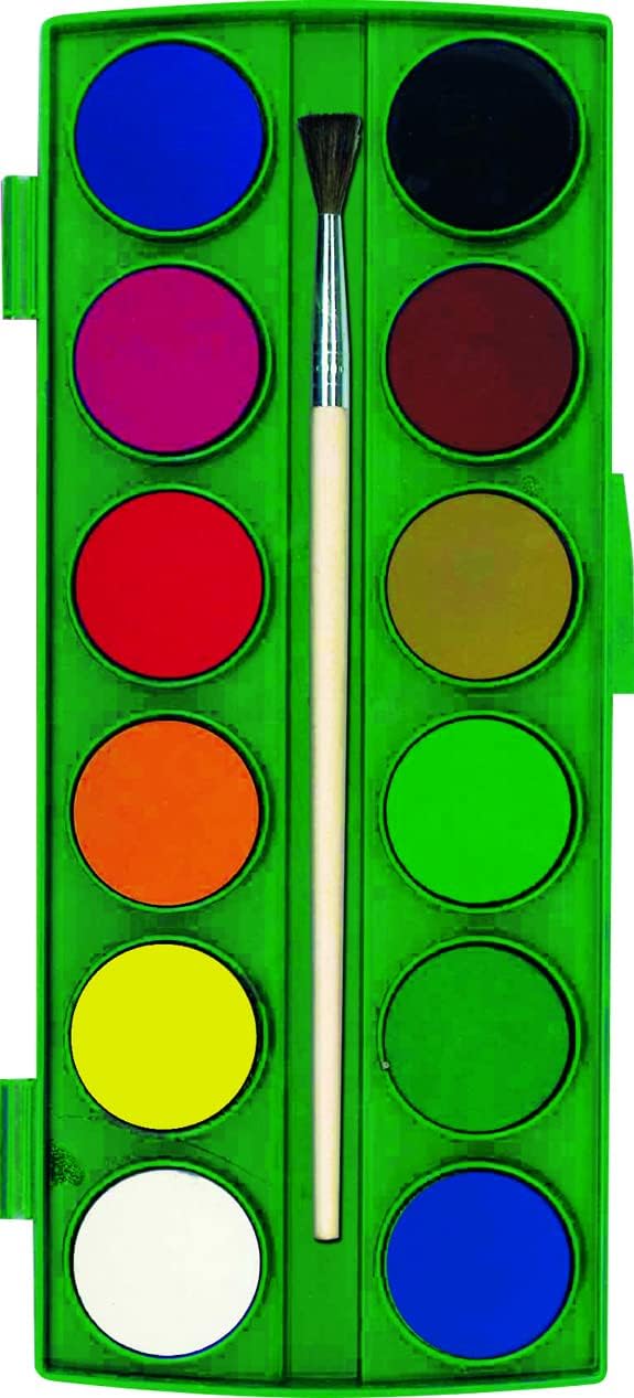 Cofanetto Da 12 Acquerelli Di Discesa 28 mm Colori intensi e strass per colorare o disegnare, pennello incluso