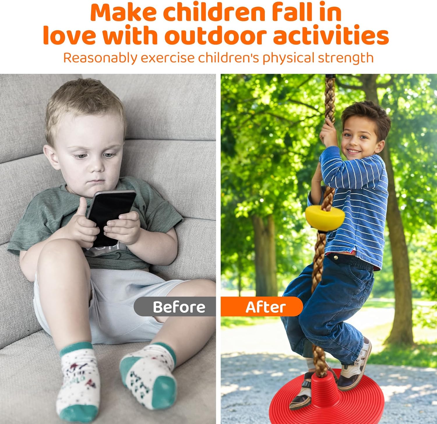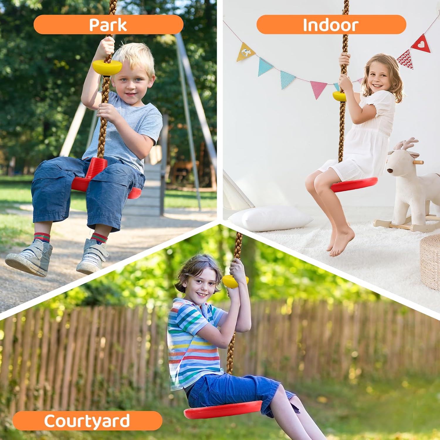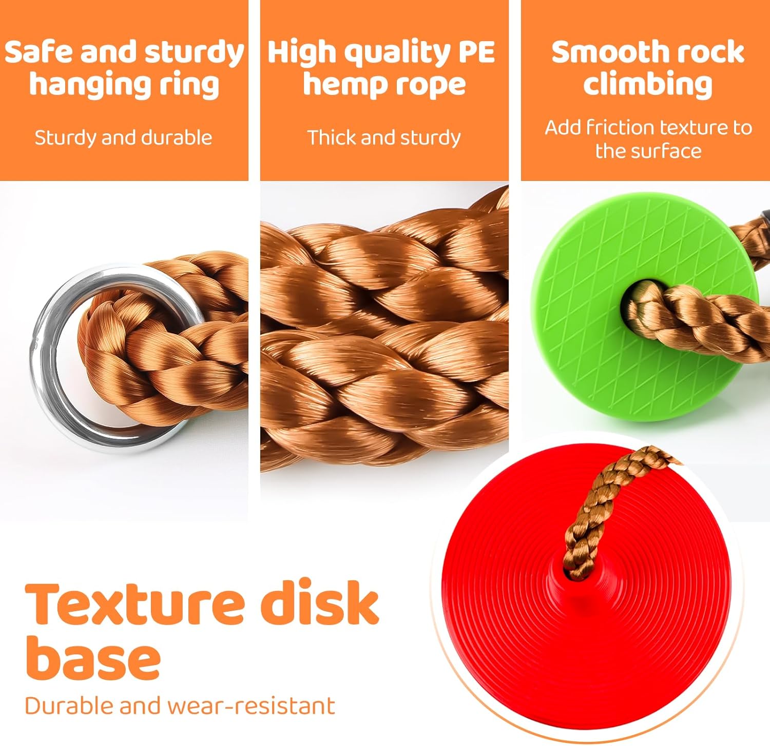 1. [Robusto e durevole] L'altalena a disco è dotata di maniglie antiscivolo e di un ampio sedile in PE. Gli anelli in metallo per carichi pesanti, con saldature minime, possono sostenere fino a 150 kg, garantendo la massima tranquillità a te e alla tua famiglia. 2. [Corda regolabile] La lunghezza dell'oscillazione del disco è regolabile tramite un semplice nodo. Permette ai bambini di stare in piedi o seduti e viene fornito con un'altalena, una piattaforma di arrampicata e una corda abbastanza lunga per facilitare l'arrampicata. 3. [Aggiunge divertimento] Questo parco giochi all'aperto sviluppa l'equilibrio e la coordinazione dei bambini, dando loro sicurezza e forza mentre oscillano. È l'accessorio ideale per l'altalena per giardini, parchi giochi o strutture ludiche e un ottimo modo per sviluppare la forza del tronco e il tono muscolare. 4.[Facile da installare] L'altalena si monta in pochi minuti, consentendo a tuo figlio di condividerla con gli amici. È un ottimo complemento per scale, strutture per arrampicata, altalene, anelli per ginnastica, rocce per arrampicata, maniglie di sicurezza o altalene con pneumatici. 5. [Uso multiuso] Questa altalena da arrampicata può essere utilizzata sia per arrampicarsi che per oscillare, stimolando la forza fisica, l'equilibrio, la coordinazione, l'immaginazione e la fiducia in se stessi dei bambini. Può essere utilizzato in giardini, progetti fai da te all'aperto, strutture per l'arrampicata e aree gioco. È anche un regalo meraviglioso per i bambini!