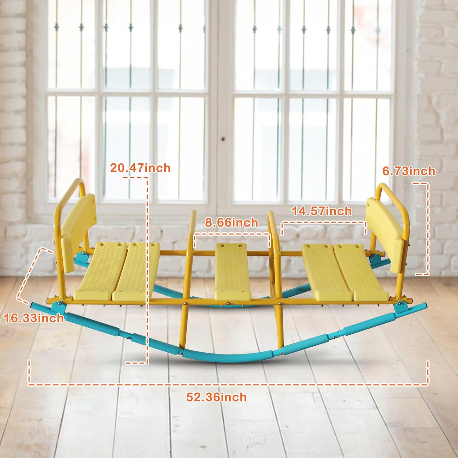 Costruzione stabile: Il telaio principale è realizzato in metallo rinforzato e combinato con un sedile in plastica ecologica ad alta densità. La lunghezza totale è di 133 cm (52,36 pollici). Il sistema di supporto distribuito garantisce stabilità durante i giochi multigiocatore, difficilmente si deforma durante l'uso a lungo termine ed è adatto sia per uso esterno che interno. Interazione infantile: A differenza delle tradizionali tavole a dondolo per due persone, questo modello offre un'innovativa configurazione di posti a sedere per tre persone. Il sedile centrale collega i due bracci oscillanti laterali, consentendo l'interazione giocosa di tre bambini contemporaneamente e incoraggiando movimenti divertenti. I bambini traggono vantaggio dal loro senso di equilibrio e dalla loro capacità di lavorare in squadra, il che lo rende ideale per feste di famiglia, asili nido e altri eventi sociali. Facilità di montaggio: assemblato in 10 minuti senza attrezzi. Verniciatura a polvere ecologica per resistenza ai raggi UV e agli agenti atmosferici. Per la cura sono sufficienti poche salviette, il che riduce i costi. Materiali resistenti alle intemperie: I sedili sono realizzati in materiale PP ecologico e non tossico con bordi arrotondati. La struttura metallica è antiruggine, resistente allo sporco e ai graffi, mantiene il suo colore e non arrugginisce, anche durante un uso prolungato all'aperto. Il rivestimento superficiale soddisfa gli standard di sicurezza e protegge la salute dei bambini. Facile da pulire: La superficie liscia del sedile può essere facilmente pulita con un panno umido. La struttura del telaio minimalista consente un montaggio rapido senza attrezzi speciali (comprese istruzioni dettagliate) - ideale per giardini, terrazze e altre aree esterne per creare un paradiso di gioco duraturo per i bambini.