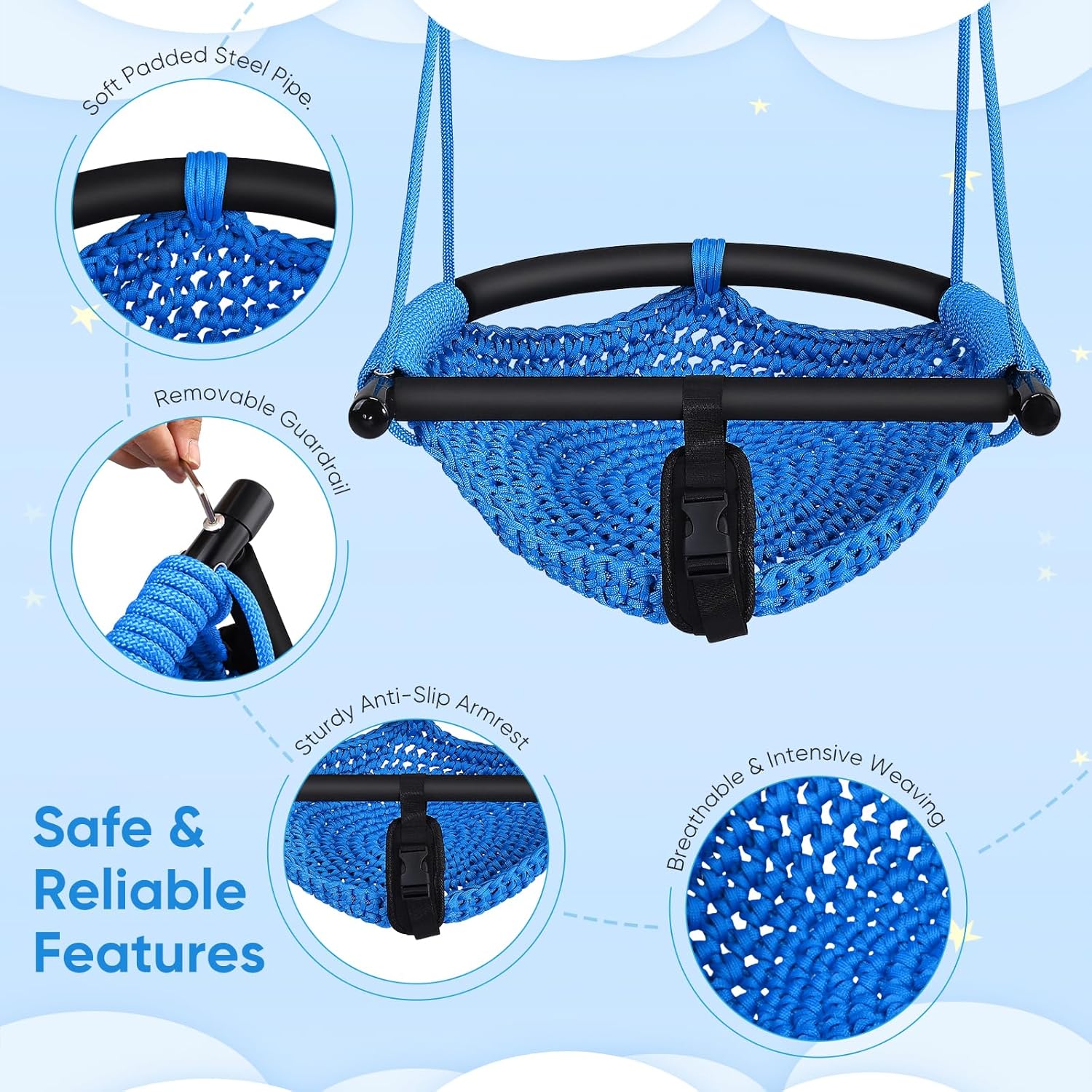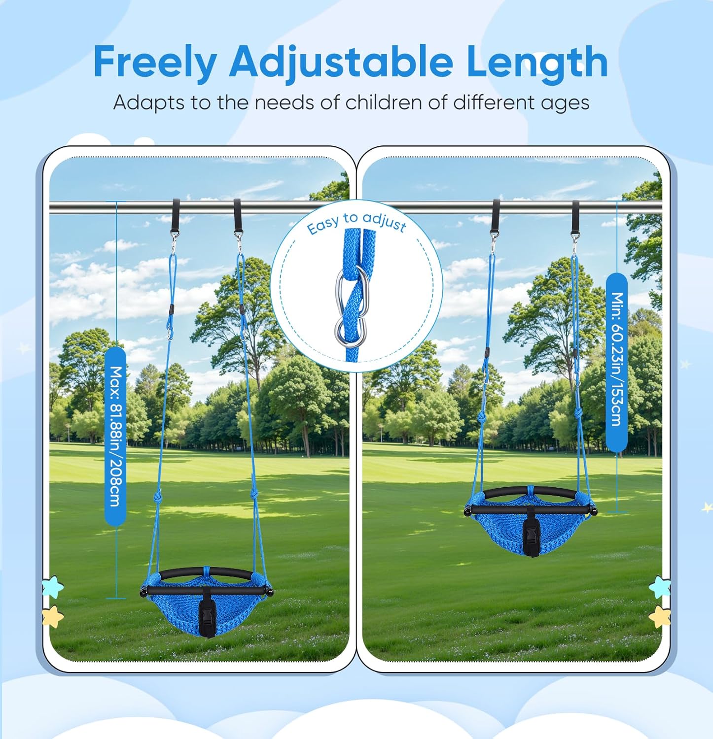 [Comodo e resistente] Il seggiolino per altalena è realizzato in corda da arrampicata intrecciata a mano, resistente allo sporco e facile da pulire, offrendo maggiore comfort, traspirabilità e durata. È anche facile da trasportare e montare. Il materiale unico rende questo seggiolino per altalena eccezionalmente robusto e durevole. [Regolazione libera dell'altezza] L'altezza del sedile può essere regolata liberamente verso l'alto o verso il basso, a seconda della lunghezza della corda, tra 153 cm e 208 cm. Questo accessorio per altalena è un'ottima idea regalo. [Sicuro e portatile] Il morbido paraurti protegge i bambini da urti e lesioni. La rete ergonomica a forma di U impedisce efficacemente ai bambini di ribaltarsi all'indietro. Questo seggiolino per altalena è portatile e facile da riporre, portare al parco giochi o appendere a un albero. [Peso] Questo seggiolino per altalena resistente può supportare fino a 200 kg ed è abbastanza robusto anche per gli adulti! Per motivi di sicurezza, si consiglia che i bambini dai 2 ai 12 anni non pesino più di 200 kg. [Ottimo gioco all'aperto] L'altalena per bambini può essere utilizzata sugli alberi, in casa, in camera da letto, nei parchi giochi, nei cortili, nei giardini, nei parchi e nei soggiorni. È perfetta anche per giocare con amici e familiari. Un regalo perfetto per bambini, nipoti, compagni di gioco, compleanni, festa dei bambini e Natale.