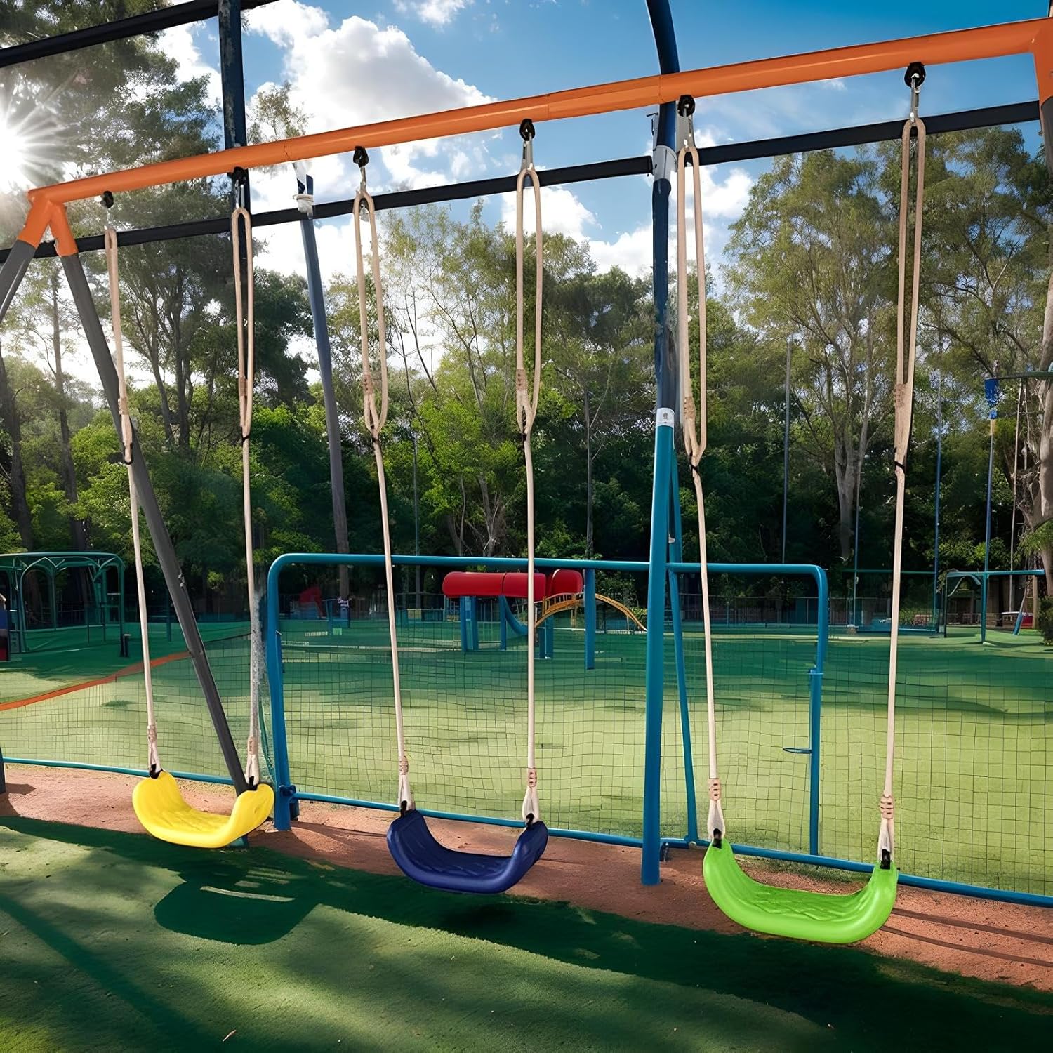 Per molte occasioni: perfettamente adatto per giardini e parchi, garantisce la compatibilità con spazi interni ed esterni, fornendo più divertimento per i bambini in ogni stagione dell'anno Comfort ottimizzato: offre un'esperienza di oscillazione sicura attraverso una vestibilità ergonomica del corpo e un design antiscivolo, promuovendo un facile gioco attivo per i bambini con questa altalena per bambini Lunghezza flessibile: progettata per bambini di tutte le età, questa altalena fornisce una lunghezza regolabile della corda e una regolazione dell'altezza unica, fornendo comodità e flessibilità in qualsiasi luogo di installazione Materiale sicuro: progettato con una struttura resistente, questa altalena per bambini garantisce una struttura portante progettata per un uso esterno di lunga durata, pur rimanendo robusta e resistente all'usura contro l'usura quotidiana Facile da installare: dotata di un design pronto all'uso, questa altalena per bambini non richiede foratura e fornisce un'installazione rapida, adattandosi senza sforzo alle configurazioni di alberi e porte per comodità