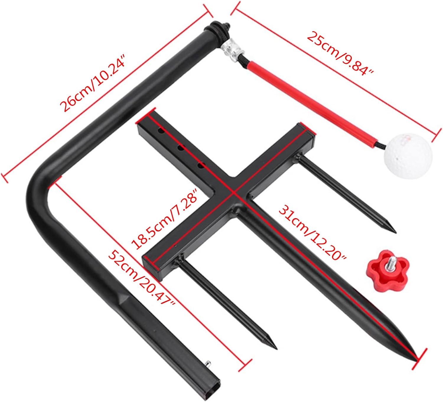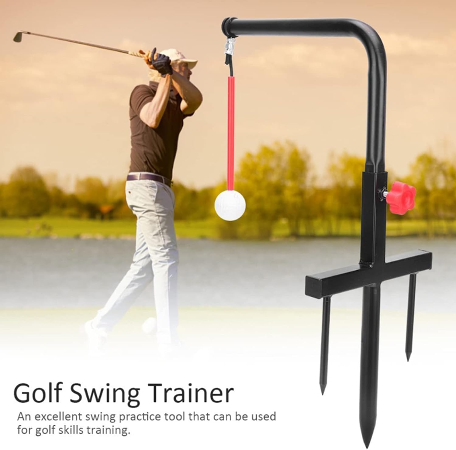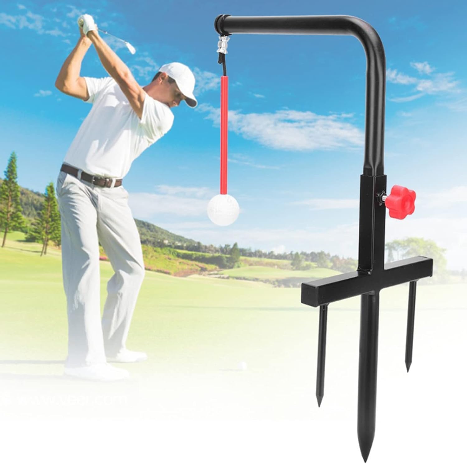 Si tees automaticamente dopo ogni swing. Sviluppa la consistenza e il ritmo dello swing. Regolazione per legni o ferri da stiro. Fornisce direzionale Condiziona i muscoli delle braccia.