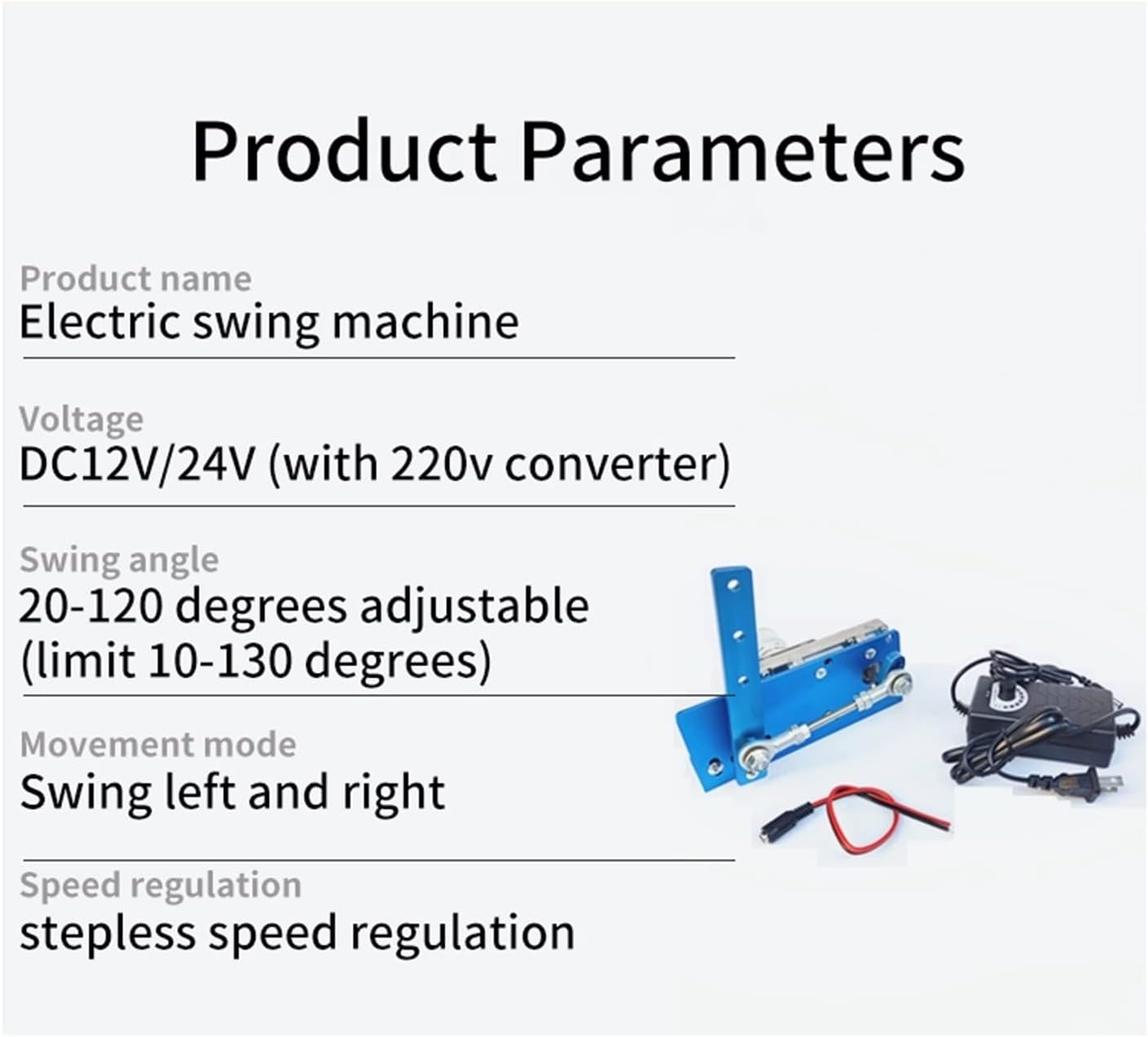 Motore di rotazione regolabile 20-120° con regolatore di velocità Altalena elettricaDurevole/Angolo regolabile/Velocità regolabile Doppio cuscinetto a sfera Oscillazione durevole e più stabile. Lavorazione CNC Più precisa e più forte.