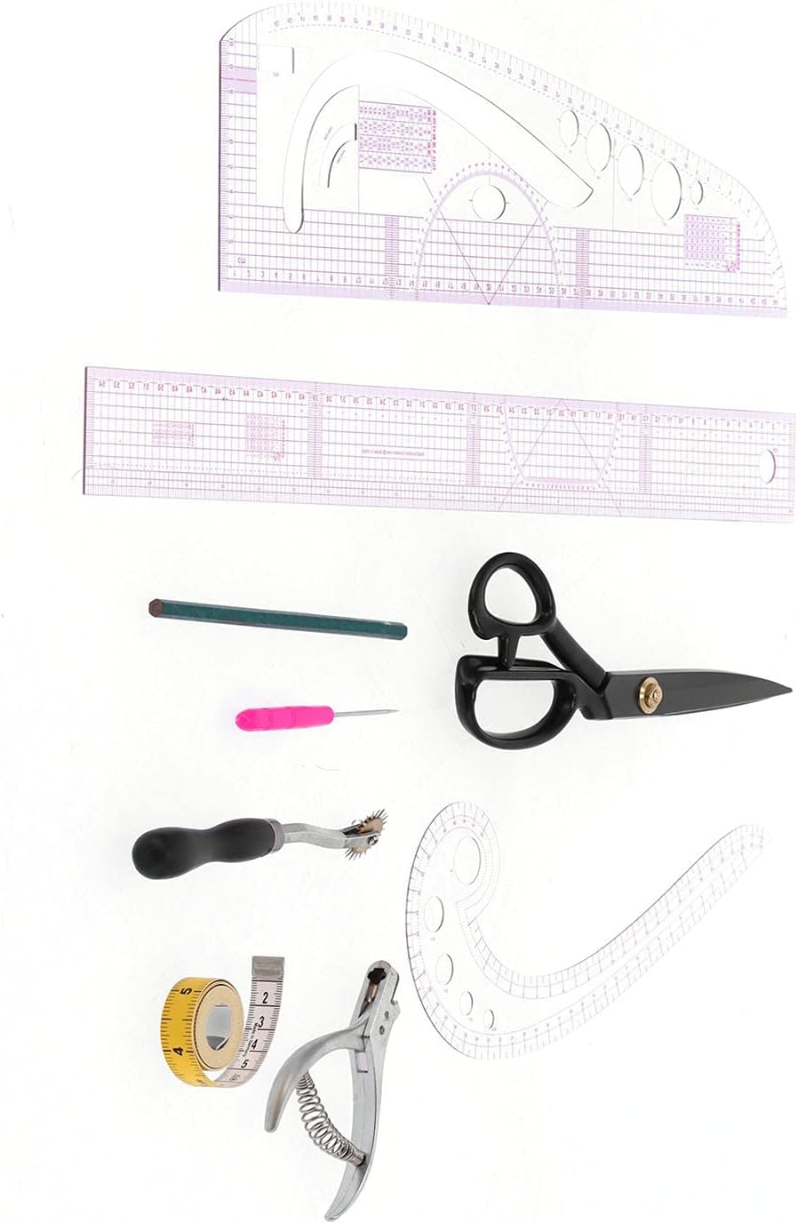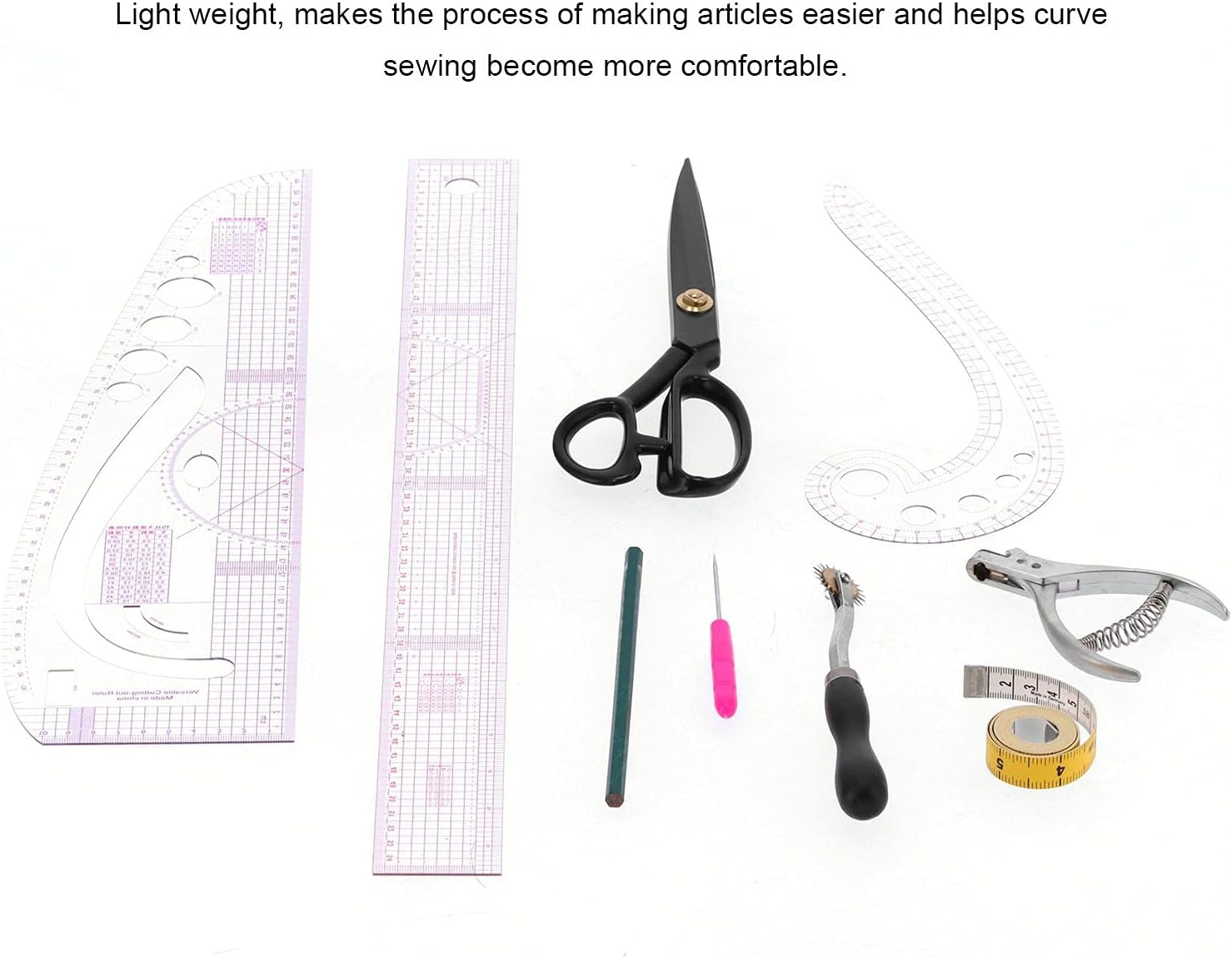♥ Pratico e pratico: il righello trasparente è progettato con una griglia rossa e la scala è chiara, in modo che ogni utente possa navigare facilmente senza interferenze. I dettagli della linea sono chiari, la precisione è elevata e non è facile da indossare. Il righello è realizzato in plastica di alta qualità, ha un certo spessore, è durevole, leggero, può essere utilizzato a lungo, è piccolo e facile da trasportare. ♥ Materiale di alta qualità: il righello è realizzato in plastica PVC di alta qualità, con linee chiare, dettagli chiari, leggero e morbido, non rigido e pieno di flessibilità. Lo strumento modello ha proporzioni chiare, non è facile da indossare e può essere utilizzato a lungo. Le forbici e le pinze dentellate sono realizzate in acciaio inossidabile, resistenti e flessibili, durevoli e non facili da arrugginire. ♥ MULTIUSO - Questo set di righelli da cucito ti offre un comodo disegno, taglio e modellatura di vari modelli di abbigliamento. È ampiamente utilizzato nel design di abbigliamento da studenti, designer, modellisti e sarti, come la pittura di schizzi, il taglio a mano, la realizzazione di lastre, ecc. Puoi anche scegliere questo set di righelli da cucito per il design di abbigliamento fai-da-te. ♥ Cuci un buon aiuto: questo set di strumenti per righelli da cucito può essere utilizzato per disegnare e contrassegnare le linee laterali dei fianchi, le cuciture dei pantaloni, le curve delle braccia, i bordi dei polsini, ecc. È molto adatto per tagliare e realizzare vestiti. Questi righelli da cucito possono stimolare il tuo pensiero, migliorare le tue abilità pratiche e rendere la tua vita e il tuo lavoro più facili e colorati. Benvenuti nel mio negozio. Per favore non esitate a contattarmi se avete domande. Ti auguro una vita felice!
