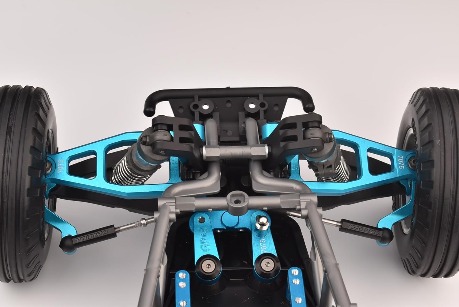 Made from aluminium 7075 material, lightweight, corrosion resistant and aesthetics. It has a high tensile strength for greater durability when doing extreme RC action Improve the stability and performance your Tamiya R/C. Package includes : Front upper suspension arms-2pcs ; Grade 12.9 black round head screws 3x8-4pcs. Suitable model : Tamiya 1/10 BBX BB-01 Chassis 58719.