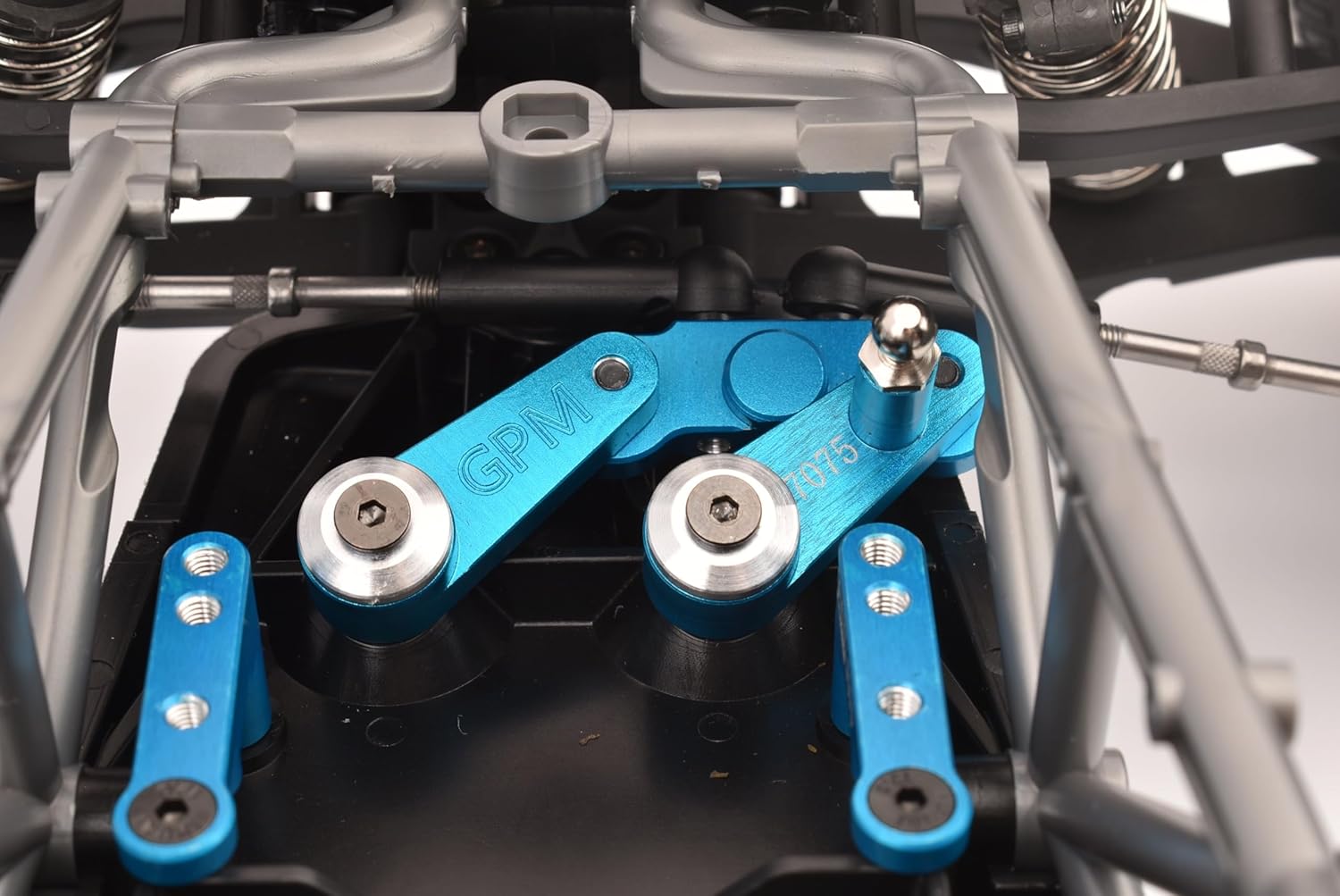 Aluminium 7075 material lightweight steering arms, direct steering feel, great durability, and smooth performance. Aluminium 7075 steering bridge offers more precise steering motion and more secure attachment of components. Improve the stability and performance your Tamiya R/C. Package includes : Steering assembly-3pcs ; Bearing 5x9x3-4pcs ; Bearing 3x8x3-2pcs ; Balls 4.8xM3x11-1pc ; Grade 12.9 black round head screws 3x8-2pcs ; Special black shims-2pcs (All fittings are pre-installed on the product). Suitable model : Tamiya 1/10 BBX BB-01 Chassis 58719.