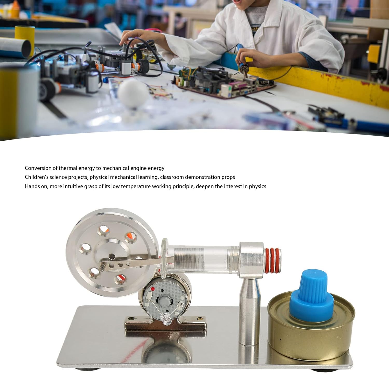 Alte prestazioni: progettazione strutturale complessiva scientifica per garantire l'integrità e la stabilità del sistema. Multifunzionale: l'energia termica viene convertita in energia meccanica del motore, pratica, più intuitiva per padroneggiare il suo principio di funzionamento a bassa temperatura, approfondire l'interesse per la fisica. Facile da montare: motore Stirling Valore da collezione, può essere usato come ornamento, ma anche come materiale per esperimenti scolastici. Materiale: la piastra di base è realizzata in acciaio inossidabile spazzolato, resistente e resistente, non facile da arrugginire, squisita e bella. Ampia gamma di applicazioni: progetti scientifici per bambini, apprendimento meccanico della fisica, oggetti di scena dimostrativi per insegnanti in classe.