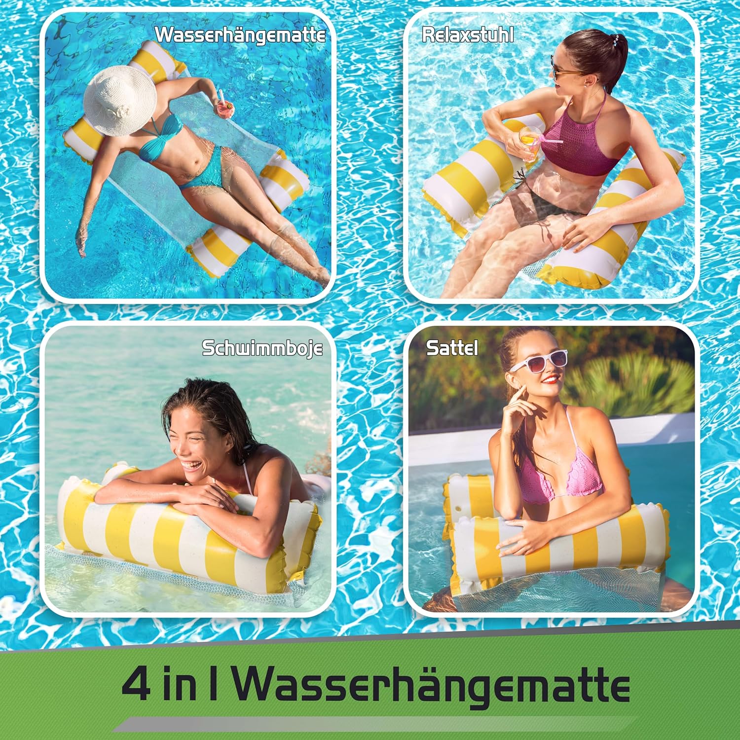 Rilassatevi nell'acqua: l'amaca acquatica con rete Balinco vi offre il modo perfetto per galleggiare nell'acqua e rilassarvi. Garantisce un comfort assoluto e una comoda posizione sdraiata in piscina o al lago. Utilizzo versatile: con i suoi 2 braccioli e la struttura a rete potrete utilizzare questo tappetino da bagno non solo per rilassarvi, ma anche per una sensazione di seduta unica in acqua. Il compagno estivo ideale Stabile e robusto: il materasso ad acqua è realizzato in materiale resistente e ha una portata massima di 120 kg. Rimane stabile anche con un uso intensivo e ti offre un comfort duraturo Leggero e compatto: facile da gonfiare e veloce da riporre dopo l'uso. La rete Luma è leggera e compatta, quindi puoi metterla facilmente in qualsiasi borsa Divertimento in bagno per tutta la famiglia: sia per adulti che per bambini, questa piscina galleggiante offre spazio sufficiente per tutti. Garantisce ore di divertimento in acqua e relax nelle calde giornate estive