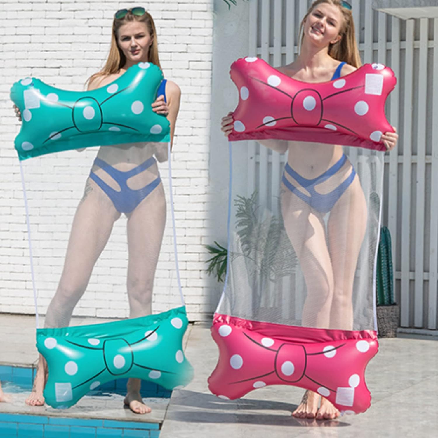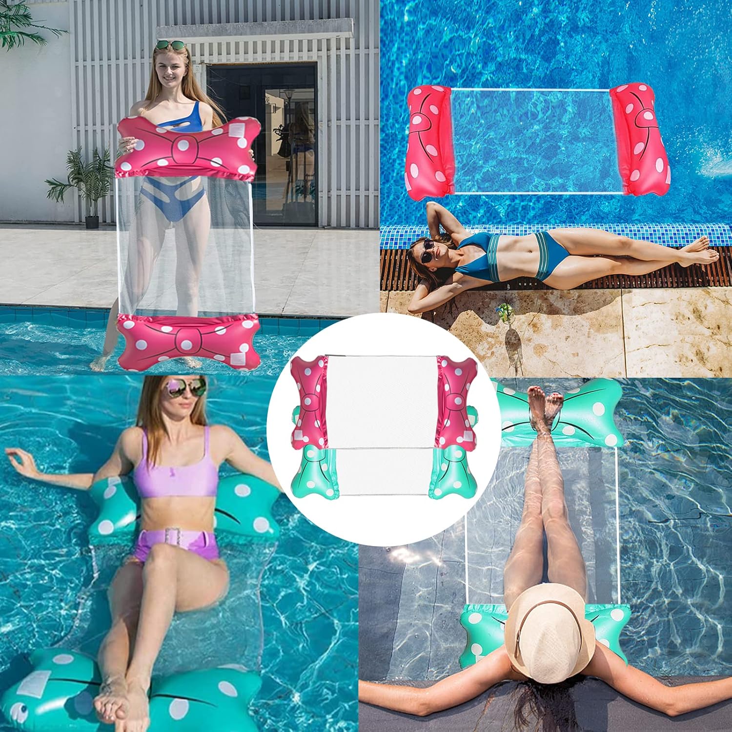 【Amaca gonfiabile】 Riceverai: Amaca gonfiabile * 2, dimensioni: circa 140 x 70 cm. Questa amaca acquatica è pieghevole, consentendoti di gonfiarla e sgonfiarla rapidamente e facilmente e di arrotolarla per riporla o trasportarla secondo necessità. La sua capacità di carico massima è di 150 kg. 【Materiali di alta qualità】 Questa amaca gonfiabile è realizzata in materiale PVC ecologico di alta qualità, inodore e non tossico, sicuro e innocuo per la salute. È resistente, morbido e si asciuga rapidamente. 【Amaca Acquatica 4 in 1】L'esclusiva funzione acqua può essere utilizzata come amaca, poltrona lounge, drifter e sella sportiva. Il poggiatesta e il poggiapiedi galleggianti sono posizionati in modo che i nuotatori possano rilassarsi per ore in piscina. 【Supporto superiore】 Questa boa da piscina è progettata e costituita ergonomicamente, fornisce supporto e comfort sufficienti, a differenza di una normale poltrona lounge, quindi puoi piegare le gambe sul cuscino inferiore e galleggiare per tutto il tempo che desideri. 【Goditi l'estate】 Perfetto per piscina, spiaggia, mare, lago e vacanze. Puoi goderti il tempo genitore-figlio con i tuoi bambini in piscina. Prendi semplicemente il tappetino da bagno e goditi la tua estate!