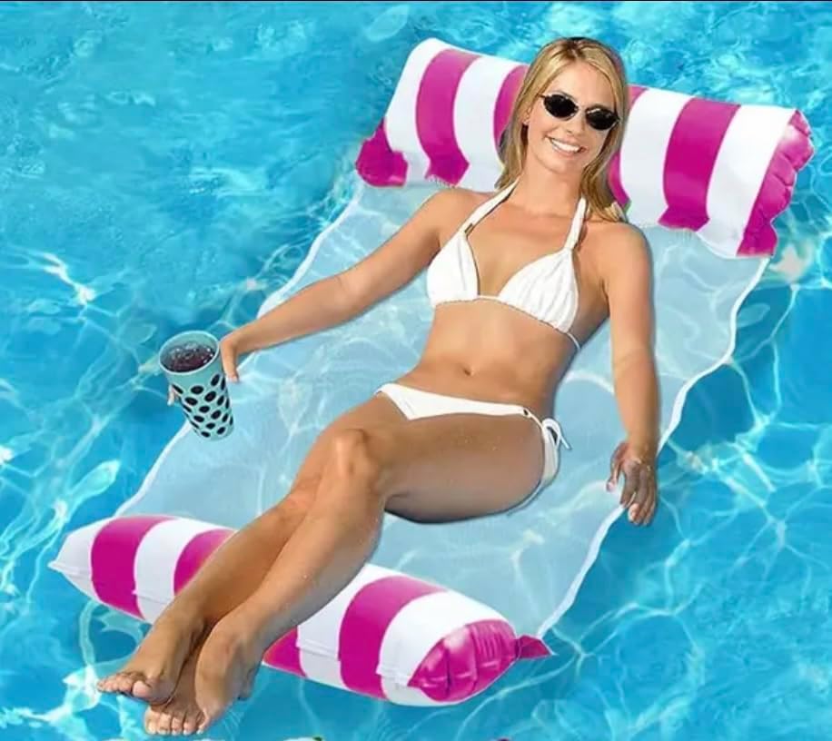 Amaca gonfiabile per piscina rosa e bianca