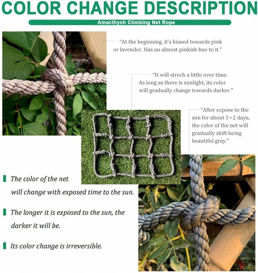 Rete da arrampicata intrecciata a mano: la rete di sicurezza per bambini è resistente anche se utilizzata all'aperto, intrecciata robusta, nodo robusto, intreccio multi-filo, rende la corda più resistente, ha una forte resistenza agli urti, può resistere alle peggiori condizioni Sicurezza dei materiali: la rete del parco giochi è realizzata in fibra di poliammide ad alta resistenza, con piccola capacità di estensione elastica, resistente alle intemperie, resistente all'usura, lunga durata, protezione solare, forte e durevole, forte capacità di carico e la capacità di carico può raggiungere i 300 kg Conservazione portatile: la corda della rete del telaio da arrampicata è moderatamente morbida, non sbiadisce facilmente, non teme vento e pioggia, ha una lunga durata, è più resistente, facile da installare e smontare. Quando non è in uso, può essere ripiegata per una facile conservazione Applicabile a: varie scene interne ed esterne, case sugli alberi, camion merci, scale, balconi, asili nido, parchi di divertimento, strutture pubbliche, isolamento per la protezione delle piante, edifici, reti da carico, reti da giardino, ecc., possono essere utilizzate per proteggere la sicurezza degli adulti e bambini Dimensioni personalizzate: spaziatura delle maglie: 15 cm; diametro della corda: 16 mm. La rete protettiva può essere personalizzata con qualsiasi spaziatura delle maglie, spessore della corda, lunghezza*larghezza e colore di cui hai bisogno