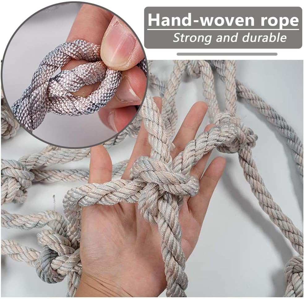 Rete da arrampicata multiuso: rete da gioco per bambini che si arrampicano, questa rete da gioco è utilizzata principalmente per l'arrampicata ed è disponibile per bambini e adulti normali Dimensioni della rete da carico per arrampicata all'aperto: spaziatura della griglia 20 cm; diametro della corda 10 mm, lunghezza da 3,3 piedi a 32,8 piedi, larghezza 3,3 piedi, può essere utilizzata per bambini e adulti per arrampicarsi, protezione di sicurezza Materiale della rete da gioco per arrampicata: fibra di poliammide ad alta resistenza, capacità di estensibilità elastica di piccole dimensioni, resistente alle intemperie, resistente all'usura, protezione solare, forte, robusta e durevole, forte capacità di carico, lunga durata Robusti nodi della rete da arrampicata: intrecciati a mano, con nodi più belli, più forti e più sicuri alla connessione della maglia, che consentono di arrampicarsi meglio senza scivolare e godersi il divertimento dell'arrampicata Personalizzazione: qualsiasi altra dimensione della rete da gioco, come spessore della corda, diametro della maglia, lunghezza * larghezza, sono disponibili per la tua scelta