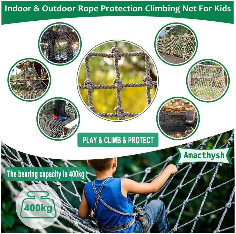 Rete da arrampicata intrecciata a mano: la rete da arrampicata è resistente anche all'esterno, grazie alla trama robusta, al nodo robusto e alla tessitura multifilo, che rende la corda più resistente, ha una forte resistenza agli urti e può resistere alle peggiori condizioni Sicurezza dei materiali: la rete da arrampicata per bambini all'aperto è realizzata in fibra di poliammide ad alta resistenza, con una ridotta capacità di estensione elastica, resistente alle intemperie, all'usura, a lunga durata, protezione solare, robusta e durevole, con una forte capacità di carico e una capacità di carico fino a 300 kg Conservazione portatile: la corda della rete da arrampicata non sbiadisce facilmente, non teme vento e pioggia, ha una lunga durata, è più resistente, facile da installare e smontare. Risparmia spazio, può essere ripiegata per una facile conservazione Applicabile a: vari scenari interni ed esterni, recinzioni, case sugli alberi, camion merci, scale, balconi, asili, parchi di divertimento, strutture pubbliche, isolamento per la protezione delle piante, edifici, reti da carico, reti da giardino, ecc., può essere utilizzata per proteggere la sicurezza di adulti e Bambini Dimensioni personalizzate: Distanza tra le maglie della rete di sicurezza: 10 cm; diametro della corda: 14 mm. La rete protettiva può essere personalizzata con qualsiasi distanza tra le maglie, spessore della corda, lunghezza*larghezza e colore