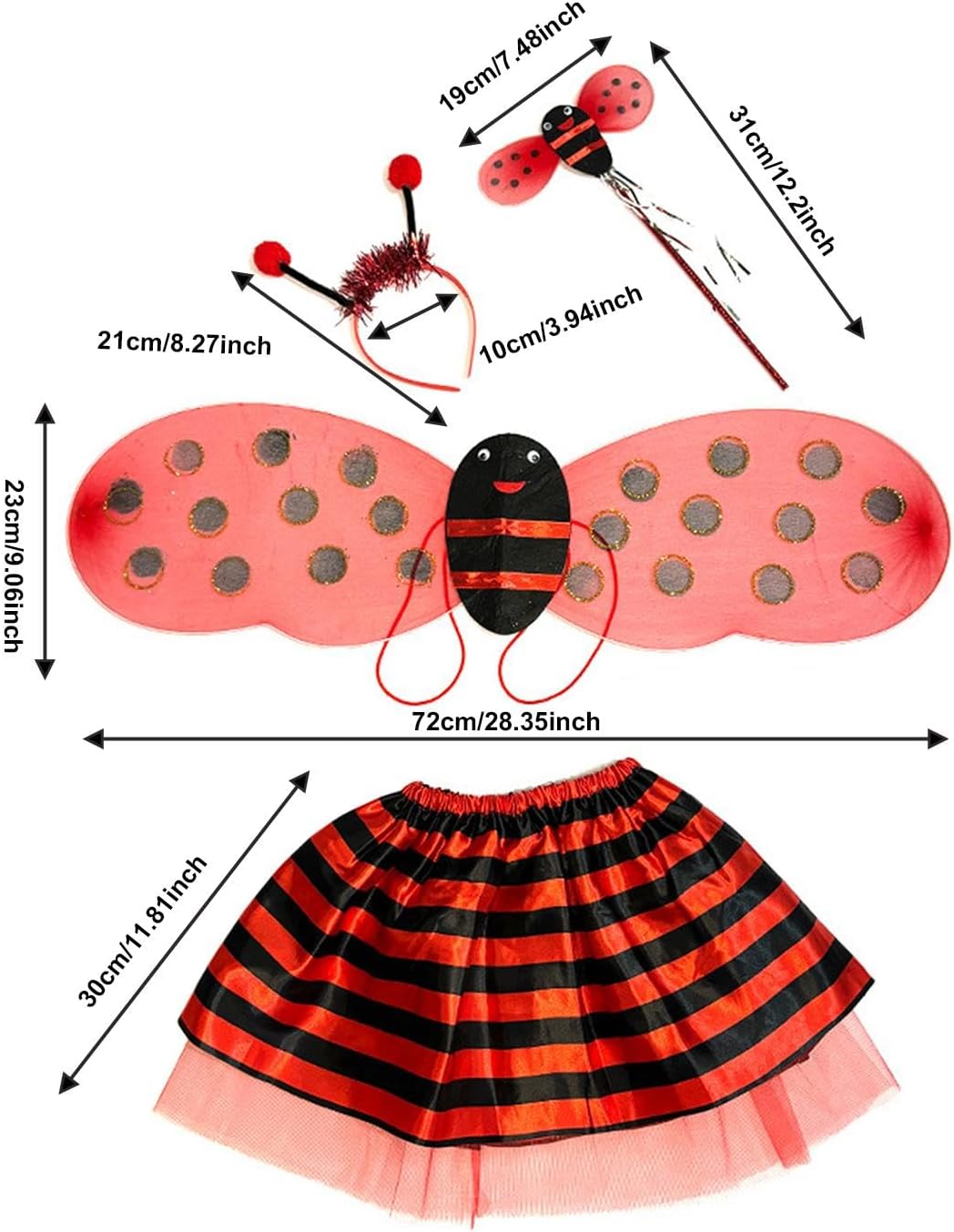 【Ampie occasioni】: accessori per costumi da animale sono ampiamente adatti per Halloween, feste, carnevali, spettacoli teatrali, oggetti di scena per foto, spettacoli, feste a tema, travestimenti, giochi di ruolo, ecc. 【Materiale di alta qualità】: il set di costumi da ape è realizzato in materiale di alta qualità a rete, filo , morbido, delicato sulla pelle, leggero e confortevole al tatto 【Ottimo regalo】: questo grazioso e accattivante kit di costumi da ape è una meravigliosa scelta regalo per i bambini in occasione di compleanni, feste, festività, riunioni, ecc. 【Set Cosplay Animale】: Kit costume da ape per bambini, include 1 , 1 fascia, 1 gonna e 1 bacchetta, ottimo per il cosplay da ape 【Facile da indossare】: accessori per travestimenti da ape sono facili da indossare e da toere, permettendoti di vestirti rapidamente. Adatto a bambini di circa 3 anni e di altezza inferiore a 1,4 m/55,12 pollici