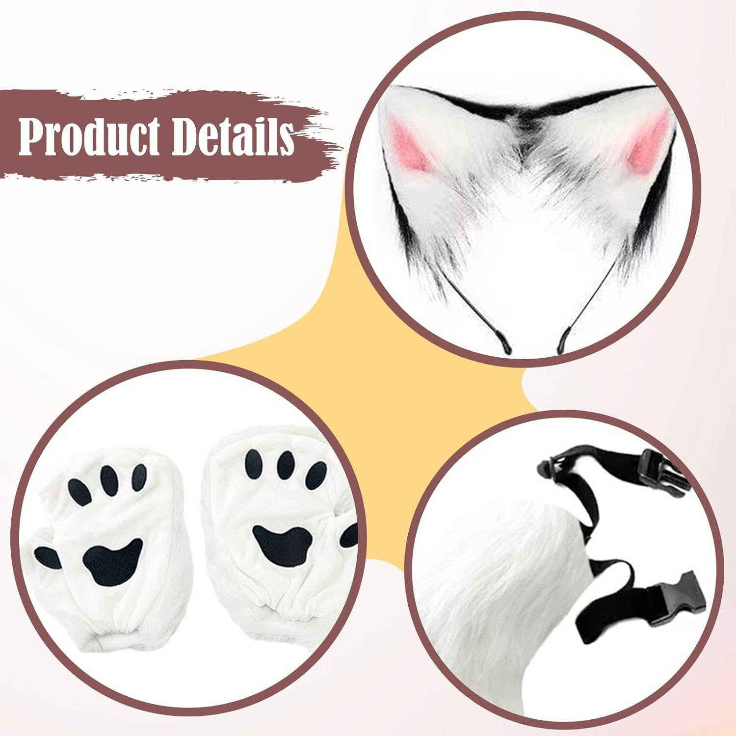 【Set Cosplay Animale】: Grazioso set di costumi con orecchie e coda di animali, include 1 fascia per le orecchie, 1 coda e 1 paio di guanti con zampe, ottimo per il cosplay di un gatto o di una 【Ottimo regalo】Questo grazioso e accattivante set di orecchie e coda di gatto è una meravigliosa scelta regalo per amici e familiari in occasione di compleanni, feste, festività, riunioni, ecc. 【Materiale di alta qualità】Il set di orecchie e coda di è realizzato in peluche di alta qualità, affidabile, leggero e comodo al tatto 【Ampie occasioni】Il set cosplay di orecchie e coda è ampiamente adatto per Halloween, feste, carnevali, spettacoli teatrali, oggetti di scena per foto, spettacoli, feste a tema, travestimenti, giochi di ruolo, ecc. 【Facile da indossare】Questo set di copricapi con orecchie di animali è facile da indossare e da togliere, permettendoti di vestirti rapidamente. La coda ha una cintura regolabile, adatta a persone diverse