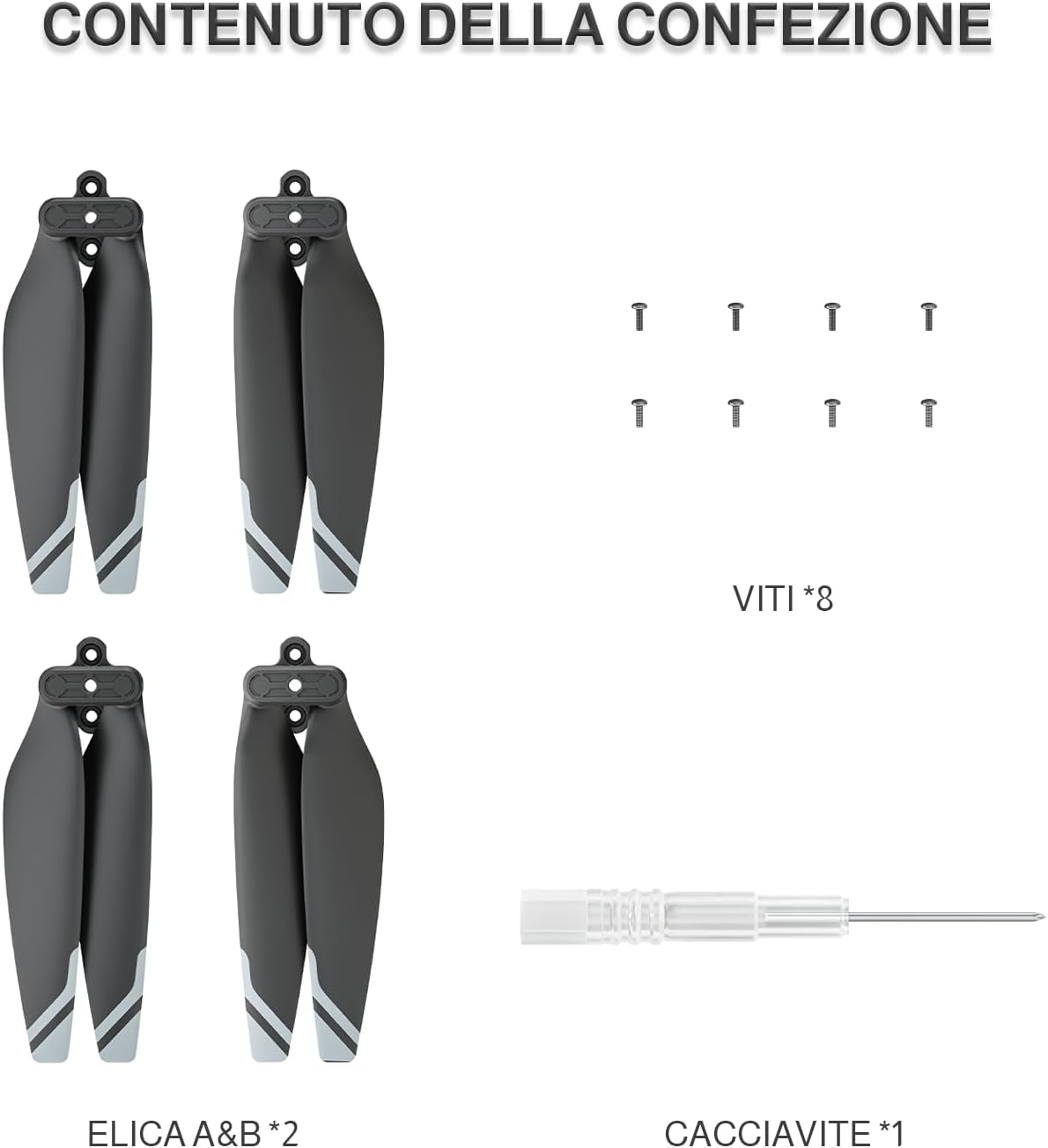 Compatibilità: queste eliche sono progettate per una perfetta compatibilità con il drone Ameta S50 Lite 4K, garantendo una vestibilità perfetta Set completo: La confezione include 2 pale dell'elica A, 2 pale dell'elica B, 1 cacciavite e 10 viti per una facile installazione Costruzione durevole: realizzate con materiali di alta qualità, queste eliche offrono prestazioni e affidabilità di lunga durata Installazione facile: con le istruzioni di installazione incluse, la sostituzione delle eliche è un processo semplice Lista del pacchetto: Elica A * 2, Elica B * 2, Viti Driver* 1, Viti * 10, Istruzioni di installazione * 1