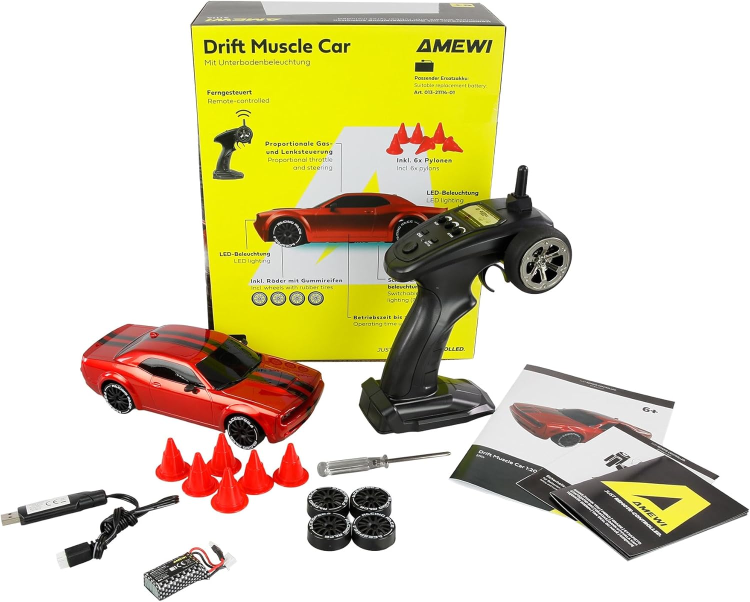 Illuminazione sottoscocca commutabile con 3 colori e 7 modalità: dona uno stile unico e arricchisce l'esperienza di guida con fantastici effetti spettacolari alla deriva proprio al crepuscolo Controllo proporzionale (gas e sterzo): controllo delicato sulla manovrabilità realistica e quindi ancora più divertimento di guida Stabilizzazione giroscopica regolabile tramite telecomando: particolarmente facile da iniziare, apprendimento più veloce e meno frustrazione grazie alla guida più costante Versione RTR (pronta per l'esecuzione) con telecomando, batteria e cavo di ricarica, batteria agli ioni di litio adatta per lunghi tempi di guida fino a 20 minuti Illuminazione LED anteriore e posteriore commutabile, azionamento 4WD, ruote con pneumatici in gomma aggiuntivi inclusi nella confezione