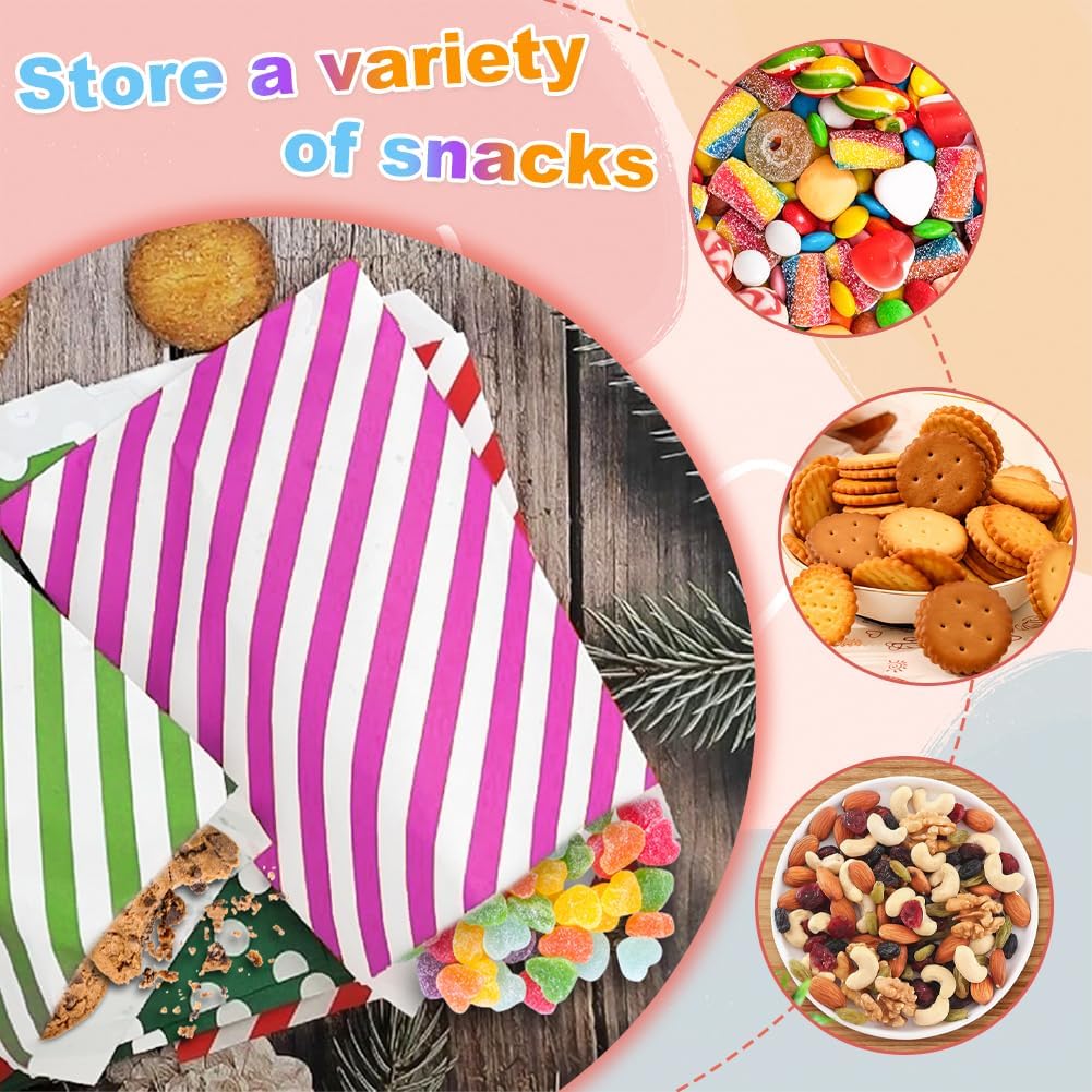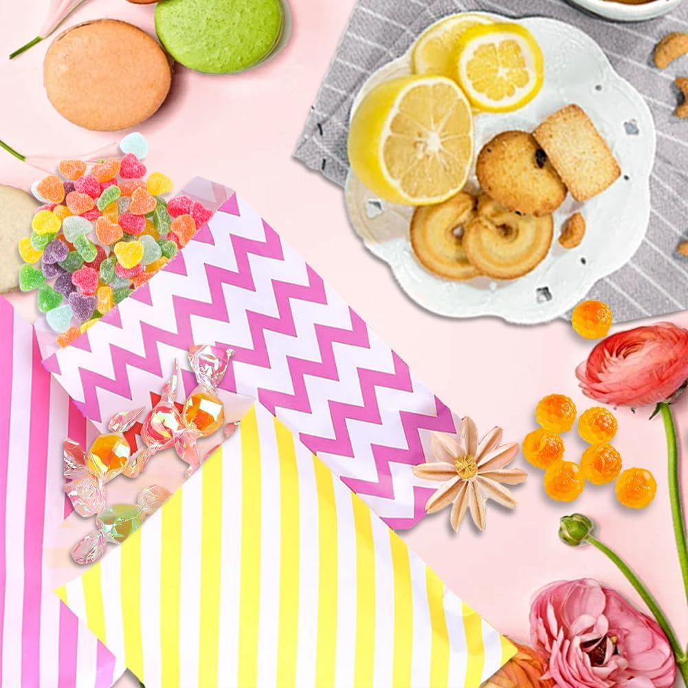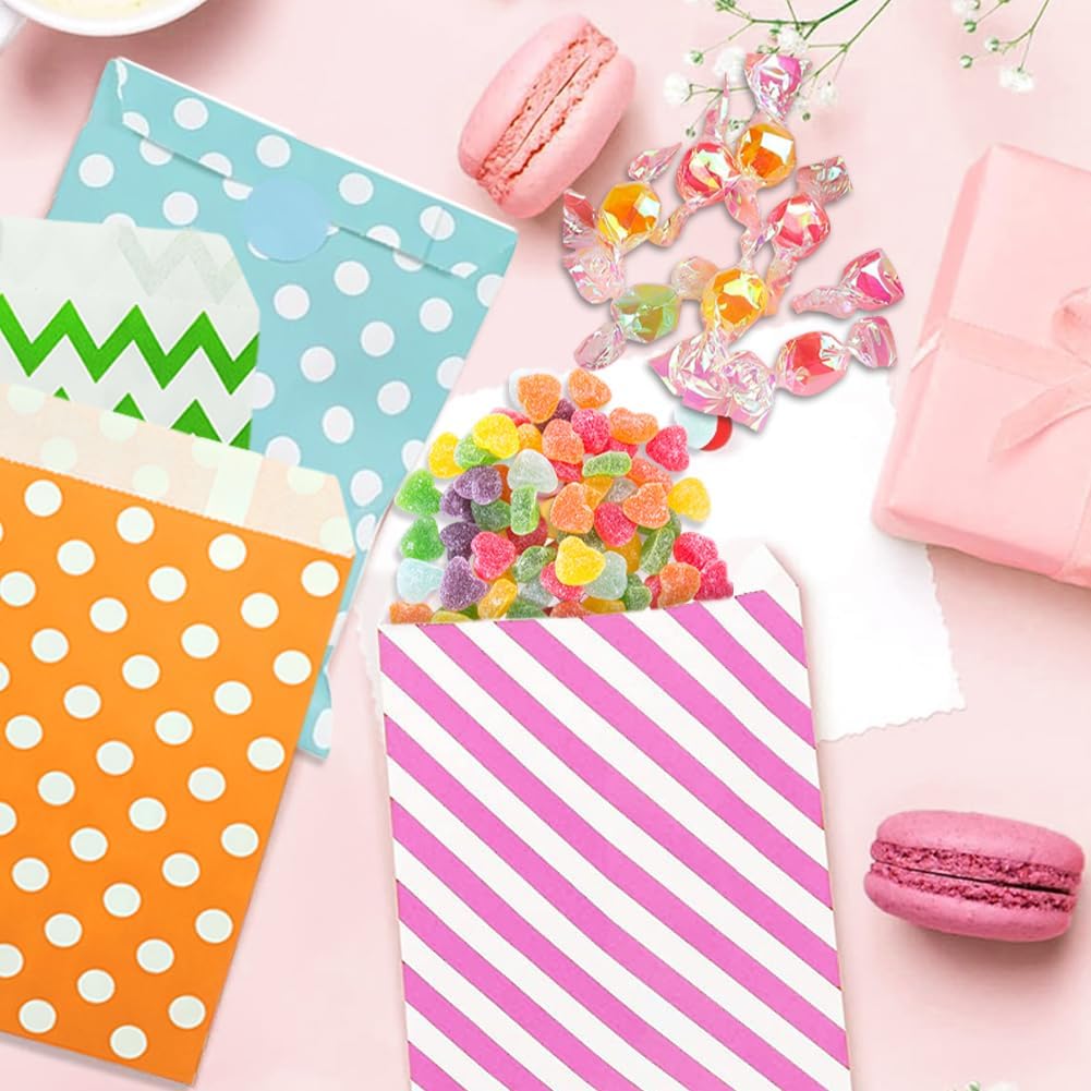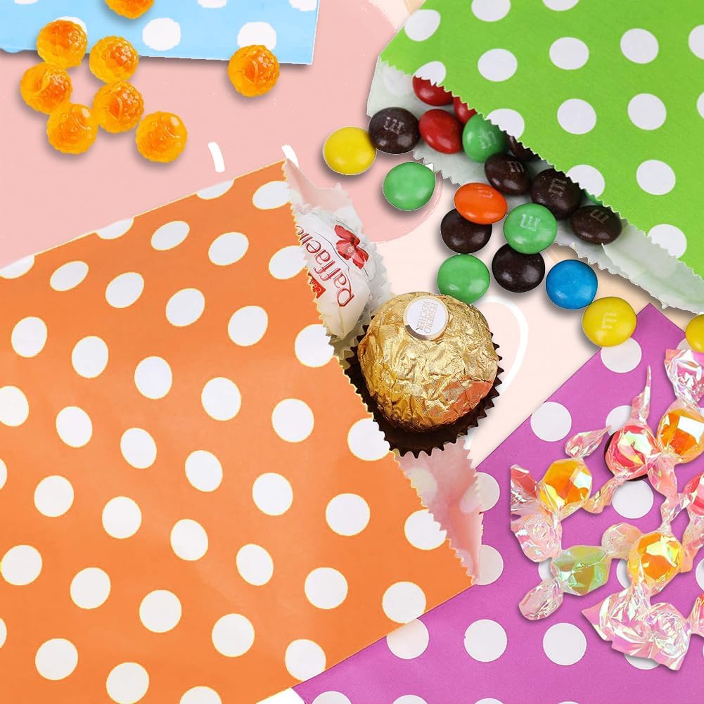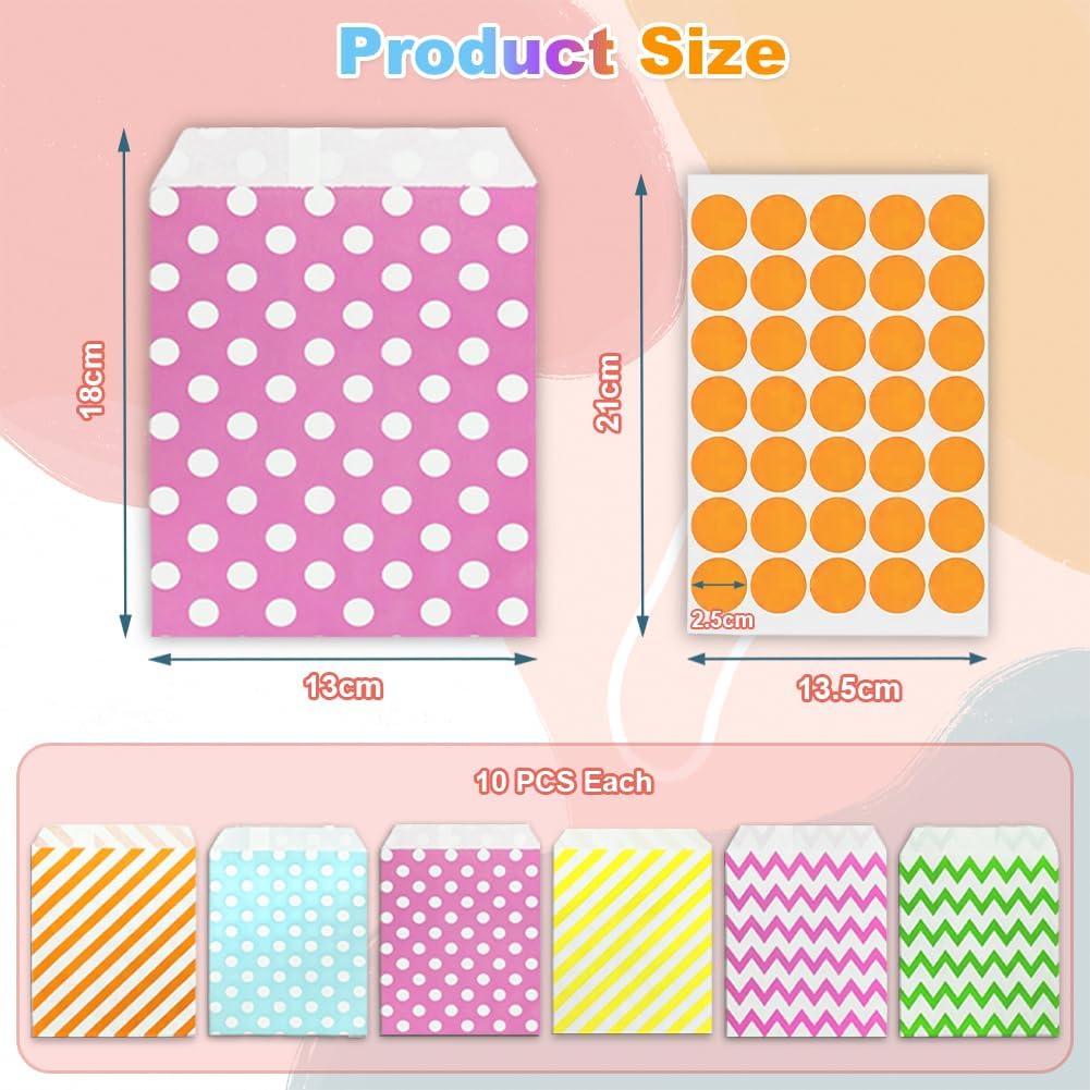 【Materiali di alta qualità】 I nostri sacchetti di caramelle sono fatti di carta. Non solo sono molto robusti e pieghevoli, ma sono anche facili da trasportare e sono caratterizzati da un'ottima robustezza. Sono la scelta perfetta per tutte le esigenze della tua festa. 【Contenuto della confezione】 60 sacchetti di carta per caramelle, di cui 60 pezzi. I sacchetti di carta sono disponibili in tre stili (righe, punti e onde) e cinque colori (arancione, giallo, verde, blu e rosa rossa). Sono inclusi anche 6 adesivi (210 pezzi in totale). 【Dimensioni compatte】 Questo sacchetto di caramelle misura 13 x 18 cm ed è ideale per piccole caramelle e biscotti. Non è adatto solo come sacchetto per caramelle, ma anche per snack, pasticcini, chicchi di caffè, ecc. Non è né troppo grande né troppo piccolo, ideale per vari scopi, facile da trasportare e pratico da usare. 【Sacchetti di carta fai-da-te】 Questi sacchetti di carta sono perfetti per l'artigianato e il fai-da-te. Possono essere dipinti, stampati e abbelliti a piacere. Personalizza le borse e rendile qualcosa di molto speciale. 【Versatile】 I sacchetti di caramelle colorati portano gioia in varie celebrazioni e occasioni, che si tratti della festa dei bambini, Pasqua, festa della mamma, barrette di cioccolato, matrimoni o feste di compleanno: sono la scelta perfetta.