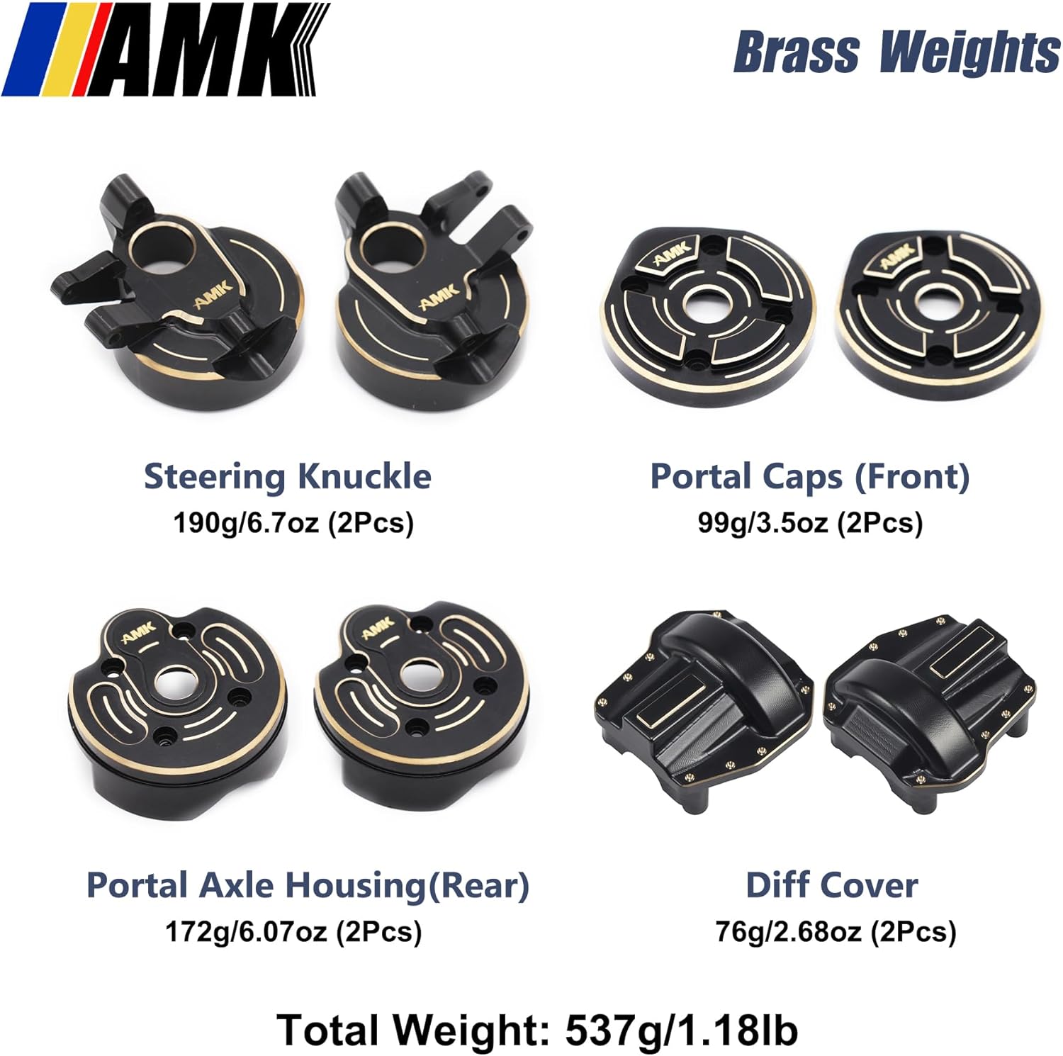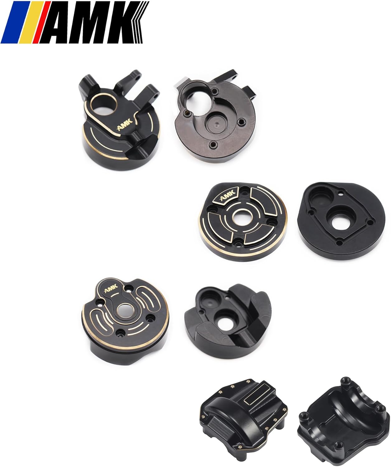 Kit in ottone 1/10 RC Crawler - Gli aggiornamenti in ottone SCX10 III includono copertura diff, snodo dello sterzo, tappi a snodo dello sterzo del portale e alloggiamento dell'asse portale, universale per asse portale Axial SCX10 III AR45P Alloggiamento dell'asse in ottone SCX10 III: realizzato in ottone, peso di 537 g, non solo rende gli assi più robusti e durevoli, ma fornisce anche pesi aggiuntivi, riducendo il centro di gravità del telaio Kit di aggiornamento SCX10 in ottone: kit professionale in ottone, aggiornamenti SCX10 III con grande capacità di presa e arrampicata, appositamente progettato e realizzato per gli appassionati di SCX10 annoiati con accessori in plastica Ottima fattura: la lavorazione CNC fornisce dimensioni precise di accessori in ottone SCX10 da 1/10, sostituendo perfettamente le scorte senza tappi e disallineamenti Anticorrosione: il rivestimento elettroforetico nero non solo previene la resistenza alla corrosione, migliorando la durata di questi accessori in scala 1/10, ma conferisce anche a SCX10 un aspetto premium, più accattivante