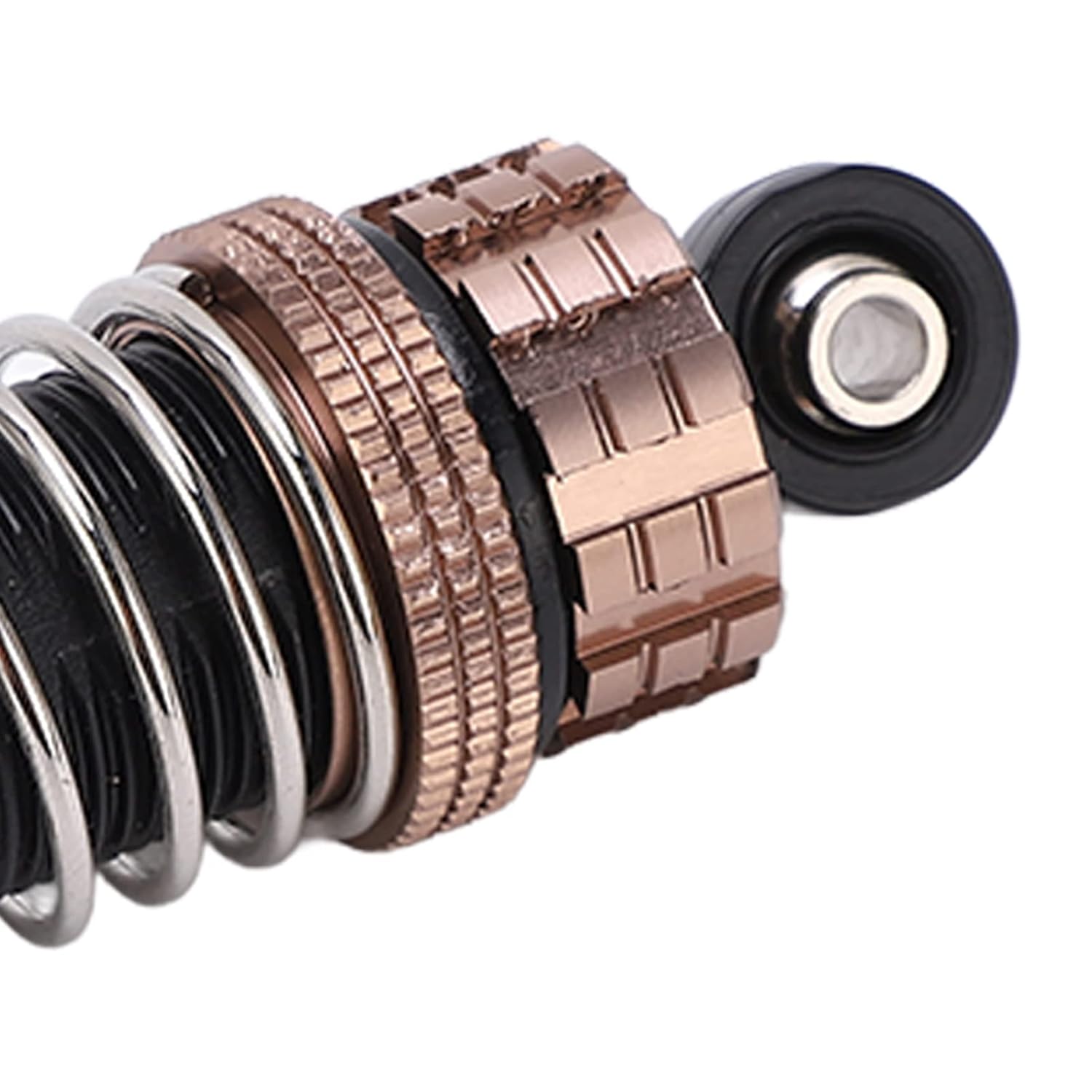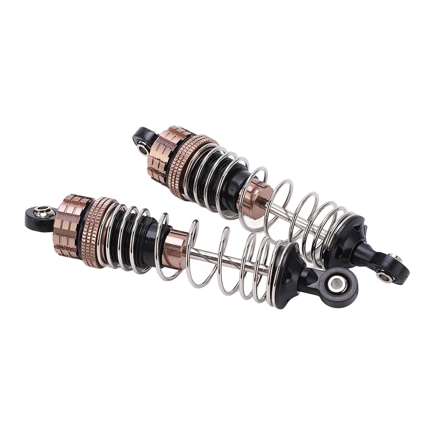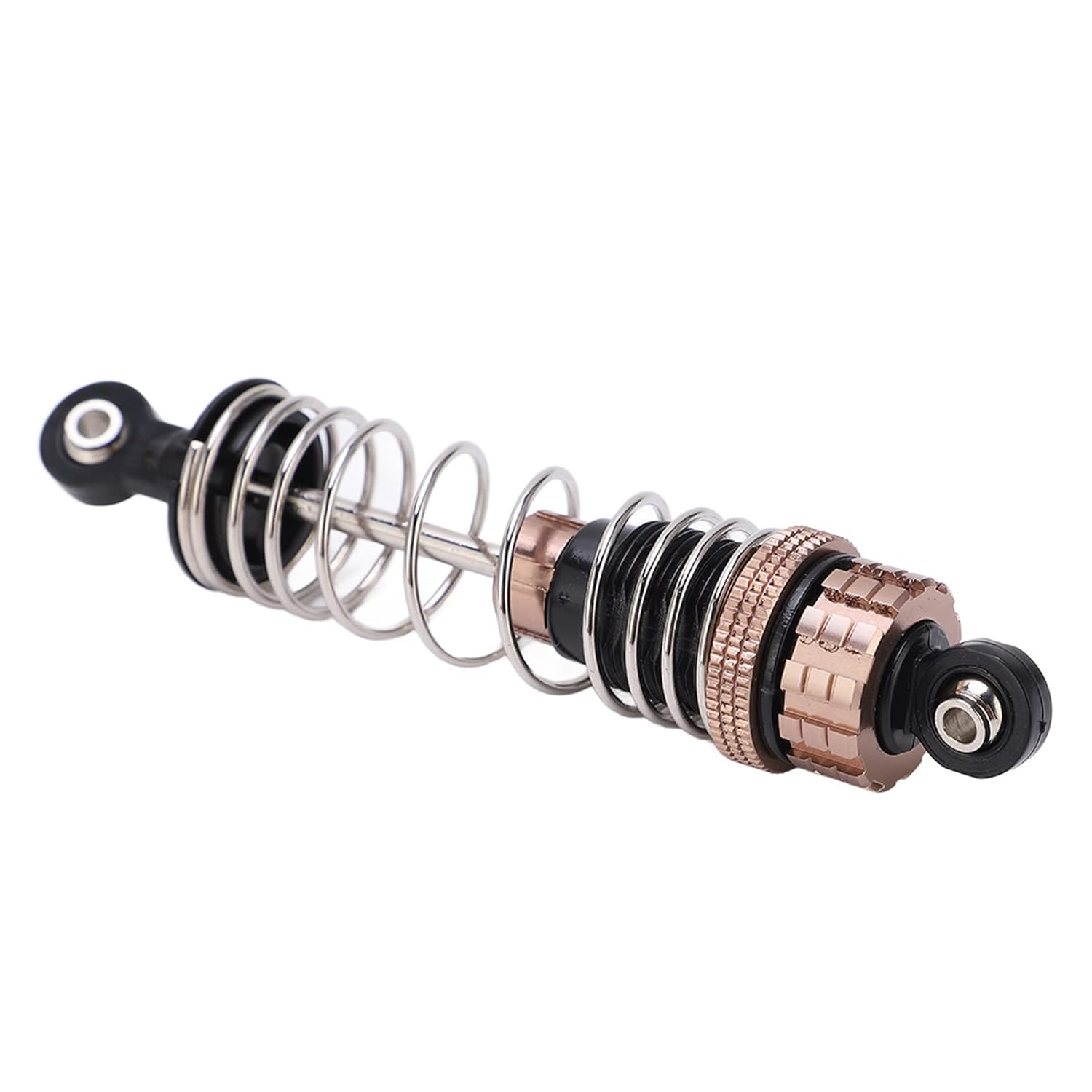 Materiale del prodotto: è realizzato in lega di alluminio e materiale plastico di alta qualità e resistente alla corrosione per garantire la massima durata. Riduce le vibrazioni: gli ammortizzatori anteriori forniscono un'esperienza di guida equilibrata e riducono le vibrazioni dovute alle difficili condizioni stradali. Corpo filettato: il corpo è filettato per una rapida regolazione dell'elevazione e una capacità di regolazione del precarico. Adatto per serie di auto ad alta velocità 1/8 1/10, camion, camioncino, fuoristrada. Molla ad alta elasticità: l'elevata elasticità della molla garantisce l'effetto ammortizzante e migliora la stabilità dell'auto telecomandata. Parte di ricambio: lavorazione eccellente, facilità di installazione e smontaggio, possono sostituire direttamente gli accessori dell'ammortizzatore vecchi o danneggiati.