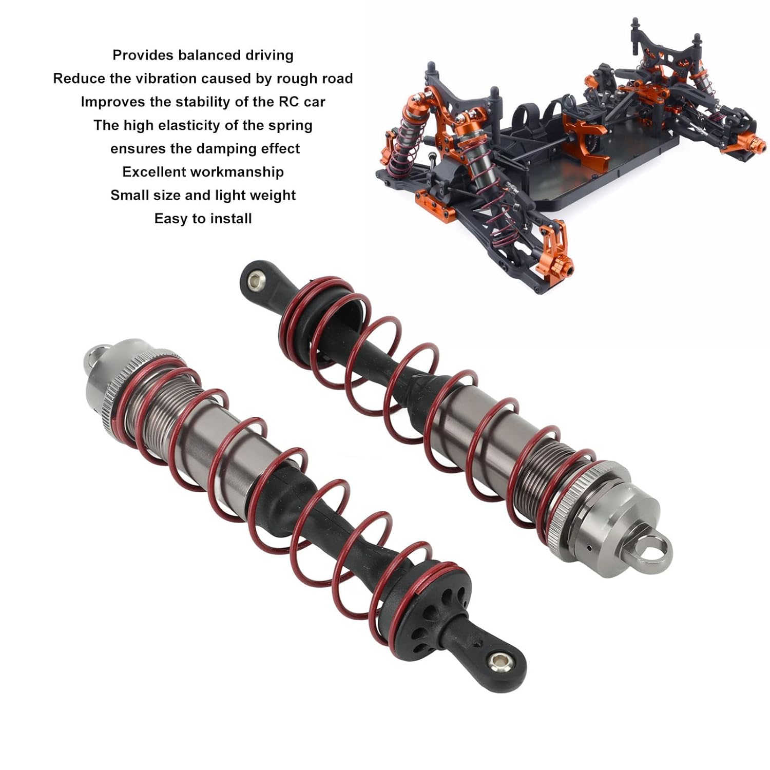 [Lega di alluminio]: realizzata in resistente lega di alluminio e plastica, che garantisce usura, corrosione e lunga durata per migliorare la durata. [Corsa bilanciata]: fornisce un'esperienza di guida fluida riducendo le vibrazioni su terreni accidentati e garantendo sicurezza e affidabilità per gli utenti. [Altezza regolabile]: regola facilmente l'altezza e il precarico e migliora le prestazioni generali e la regolazione in base alle impostazioni dell'utente. [Stabilità extra]: lavorazione CNC di precisione con molle ad alta elasticità per un migliore effetto ammortizzante e stabilità, ideale per veicoli telecomandati. [Abbinamento]: appositamente progettato per le auto ZD Racing 1/8 RC e altri modelli per garantire compatibilità perfetta e prestazioni ottimali.
